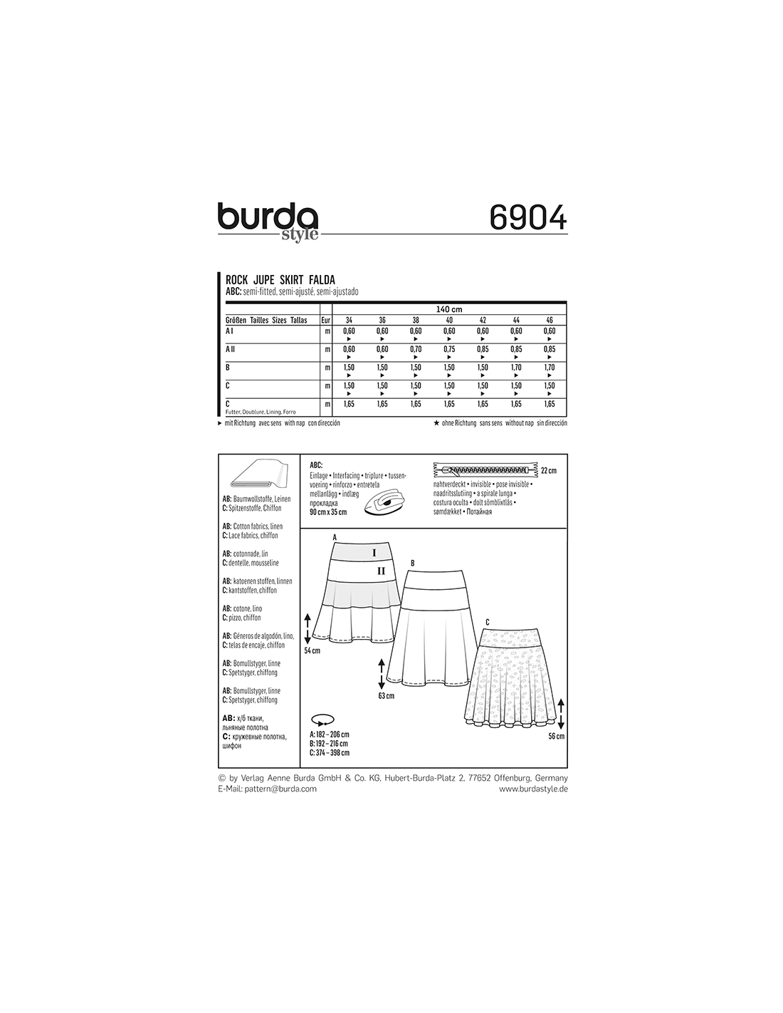 Vill du ha hjälp att tolka tygåtgången? Skicka ett mail till info@tygcenter.se med rubrik Burda 6904 så hjälper vi dig.