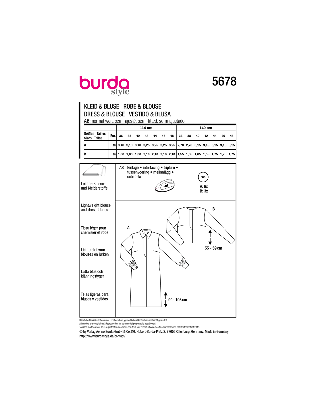 Vill du ha hjälp att tolka tygåtgången? Skicka ett mail till info@tygcenter.se med rubrik Burda 5678 så hjälper vi dig.