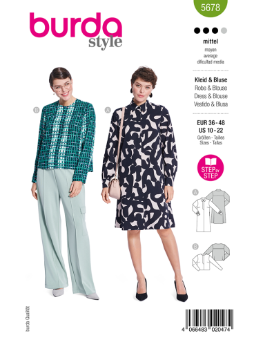 Burda symönster 5678 - Klänning/Blus - Strl 36-48