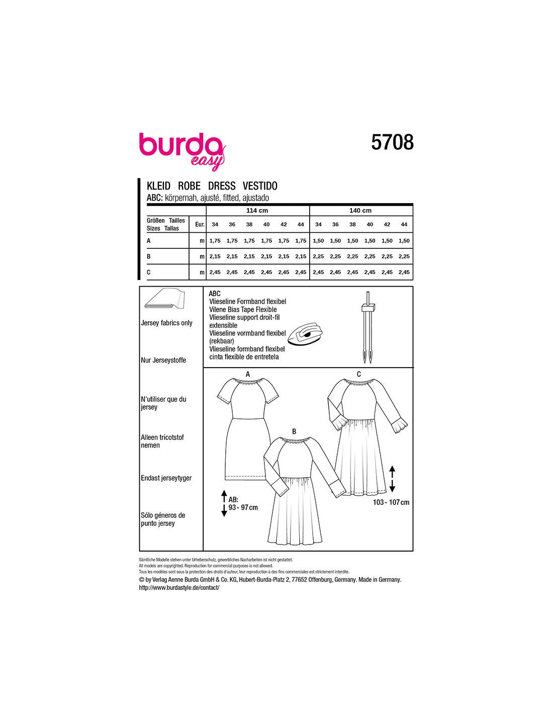Vill du ha hjälp att tolka tygåtgången? Skicka ett mail till info@tygcenter.se med rubrik Burda 5708 så hjälper vi dig.
