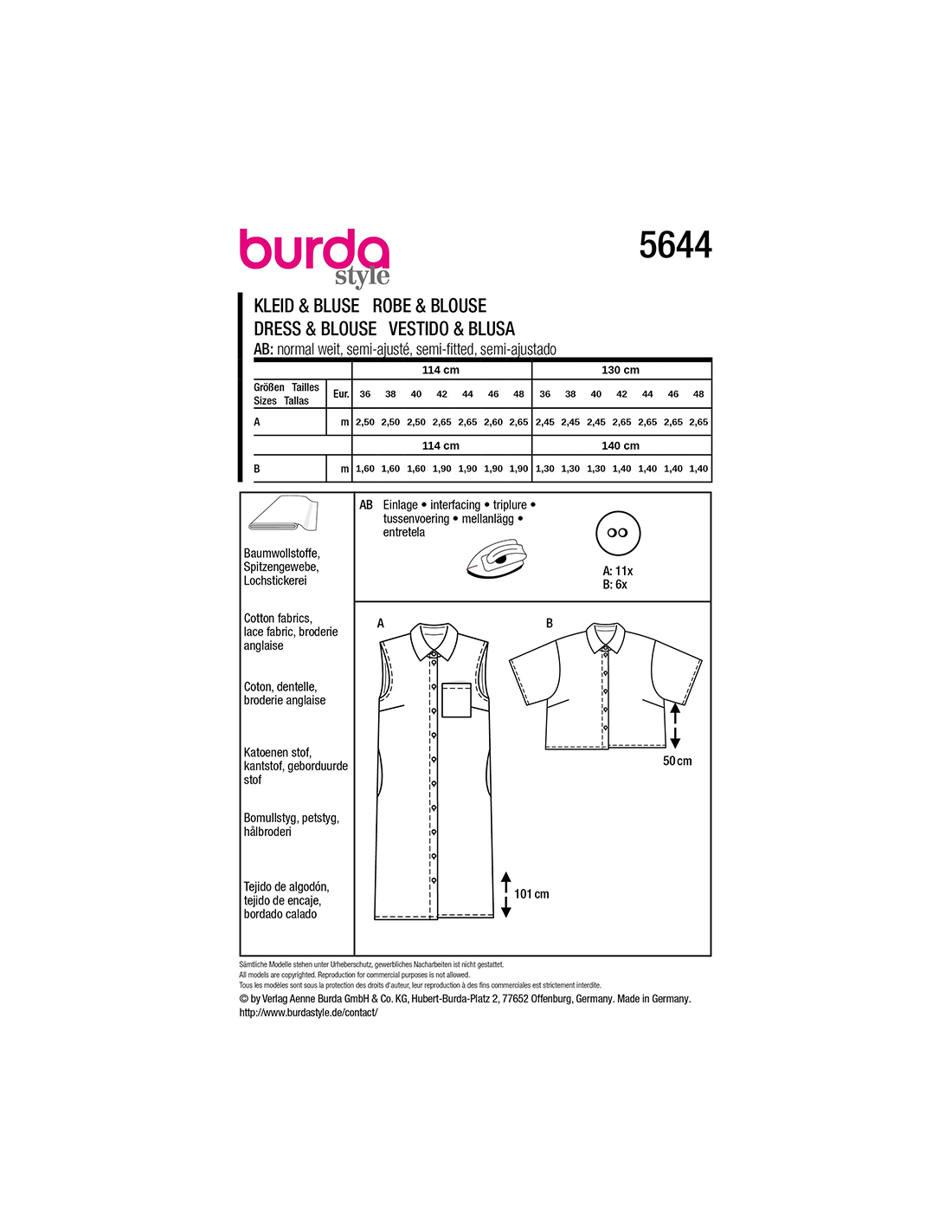 Burda symönster 5644 - Klänning/Blus - Strl 36-48