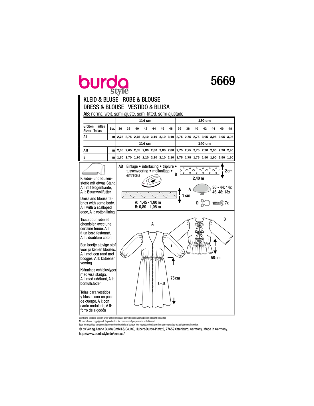 Burda symönster 5669 - Klänning/Blus - Strl 36-46