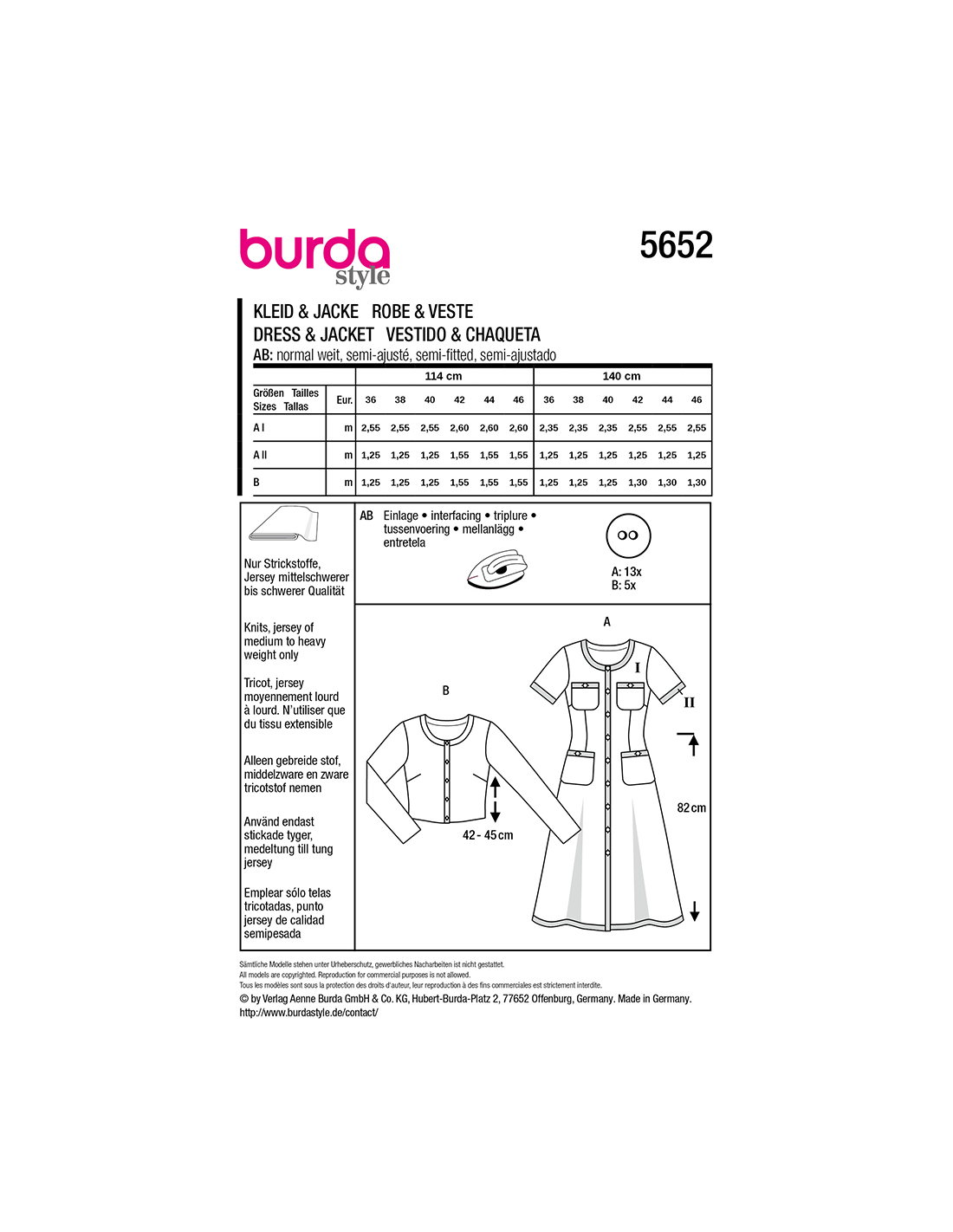 Vill du ha hjälp att tolka tygåtgången? Skicka ett mail till info@tygcenter.se med rubrik Burda 5652 så hjälper vi dig.