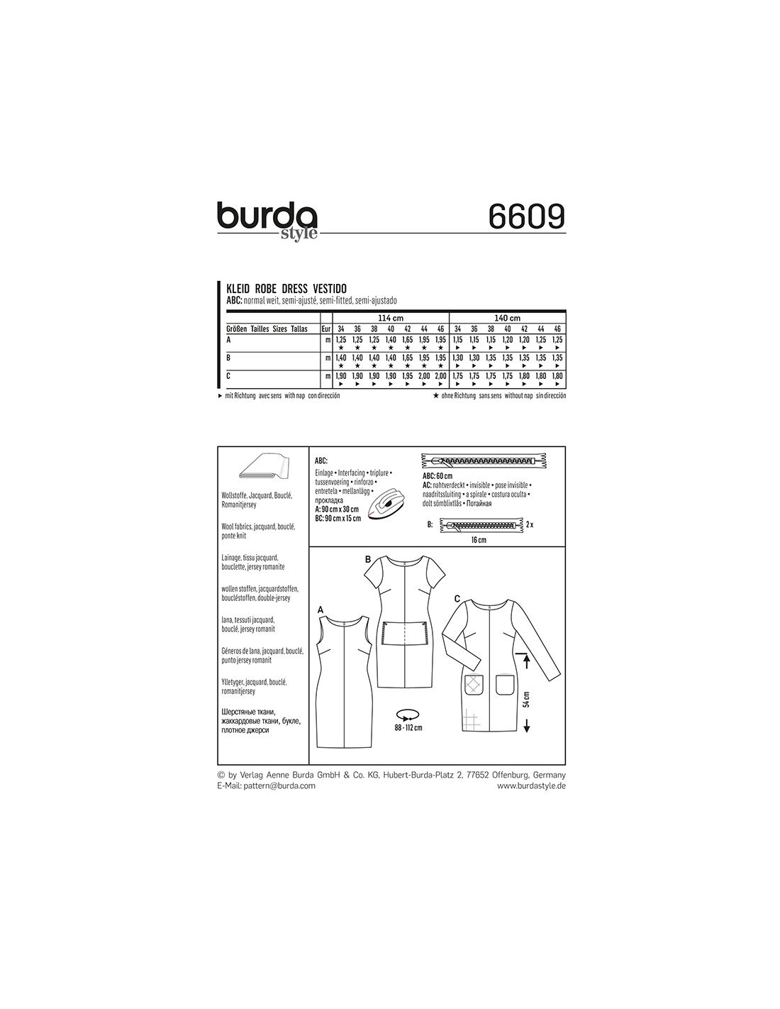 Vill du ha hjälp att tolka tygåtgången? Skicka ett mail till info@tygcenter.se med rubrik Burda 6609 så hjälper vi dig.