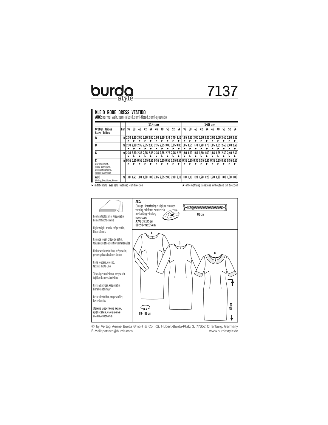 Vill du ha hjälp att tolka tygåtgången? Skicka ett mail till info@tygcenter.se med rubrik Burda 7137 så hjälper vi dig.
