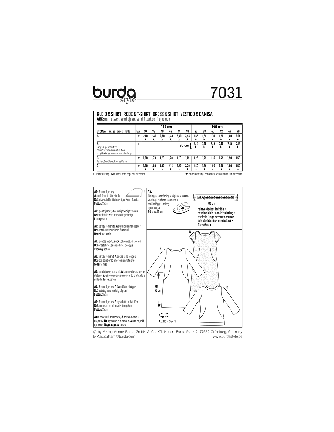 Vill du ha hjälp att tolka tygåtgången? Skicka ett mail till info@tygcenter.se med rubrik Burda 7031 så hjälper vi dig.