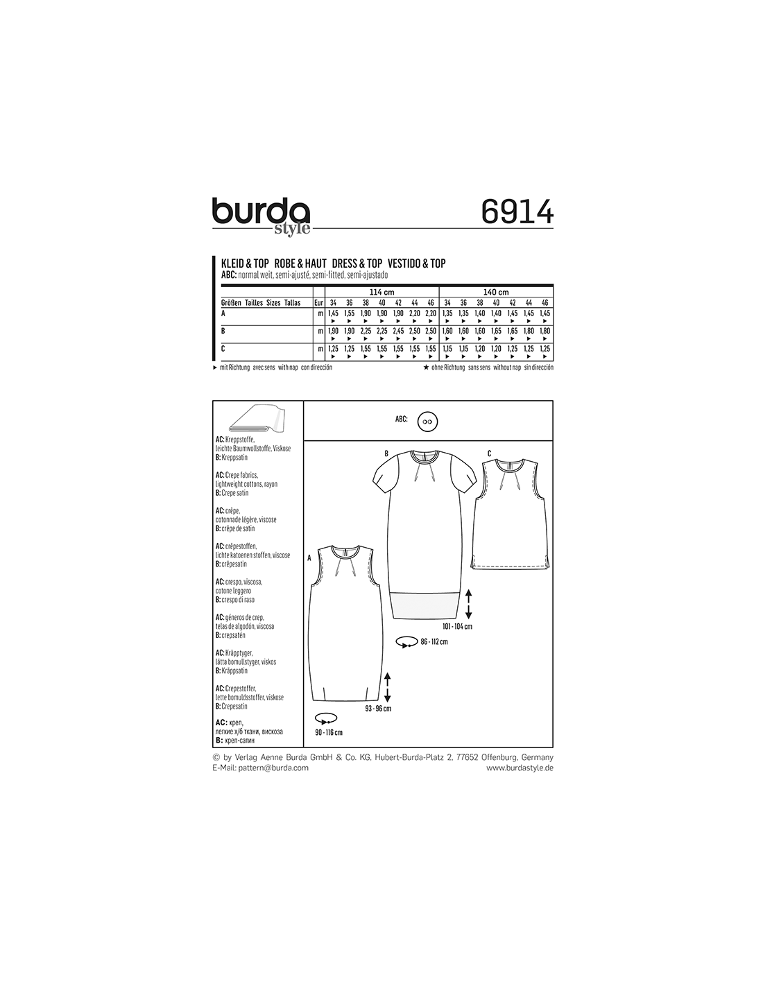 Vill du ha hjälp att tolka tygåtgången? Skicka ett mail till info@tygcenter.se med rubrik Burda 6914 så hjälper vi dig.