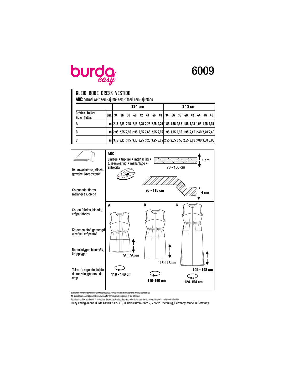 Vill du ha hjälp att tolka tygåtgången? Skicka ett mail till info@tygcenter.se med rubrik Burda 6009 så hjälper vi dig.