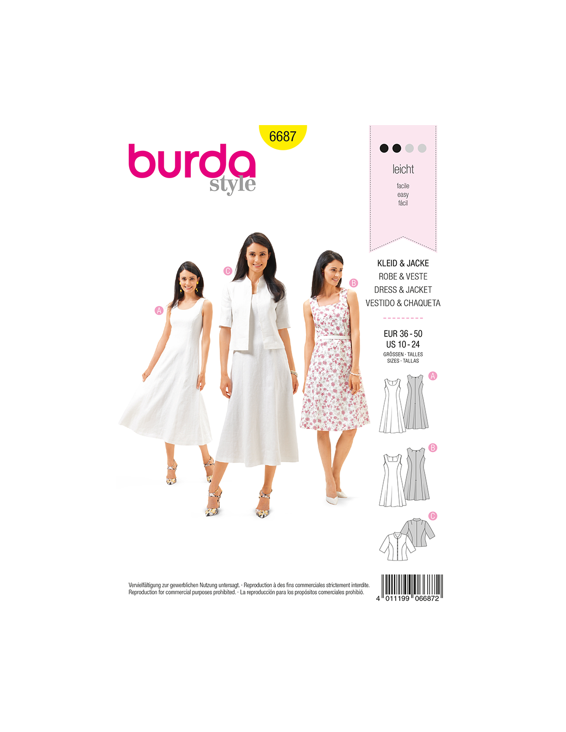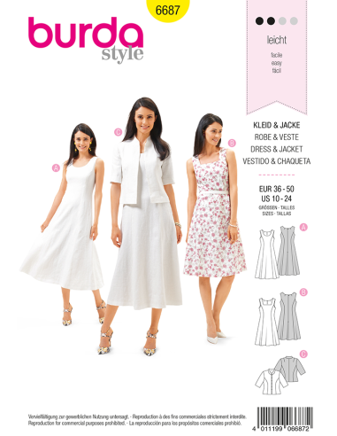 Burda symönster 6687 - Klänning/Jacka/Festmode - Strl 36-50