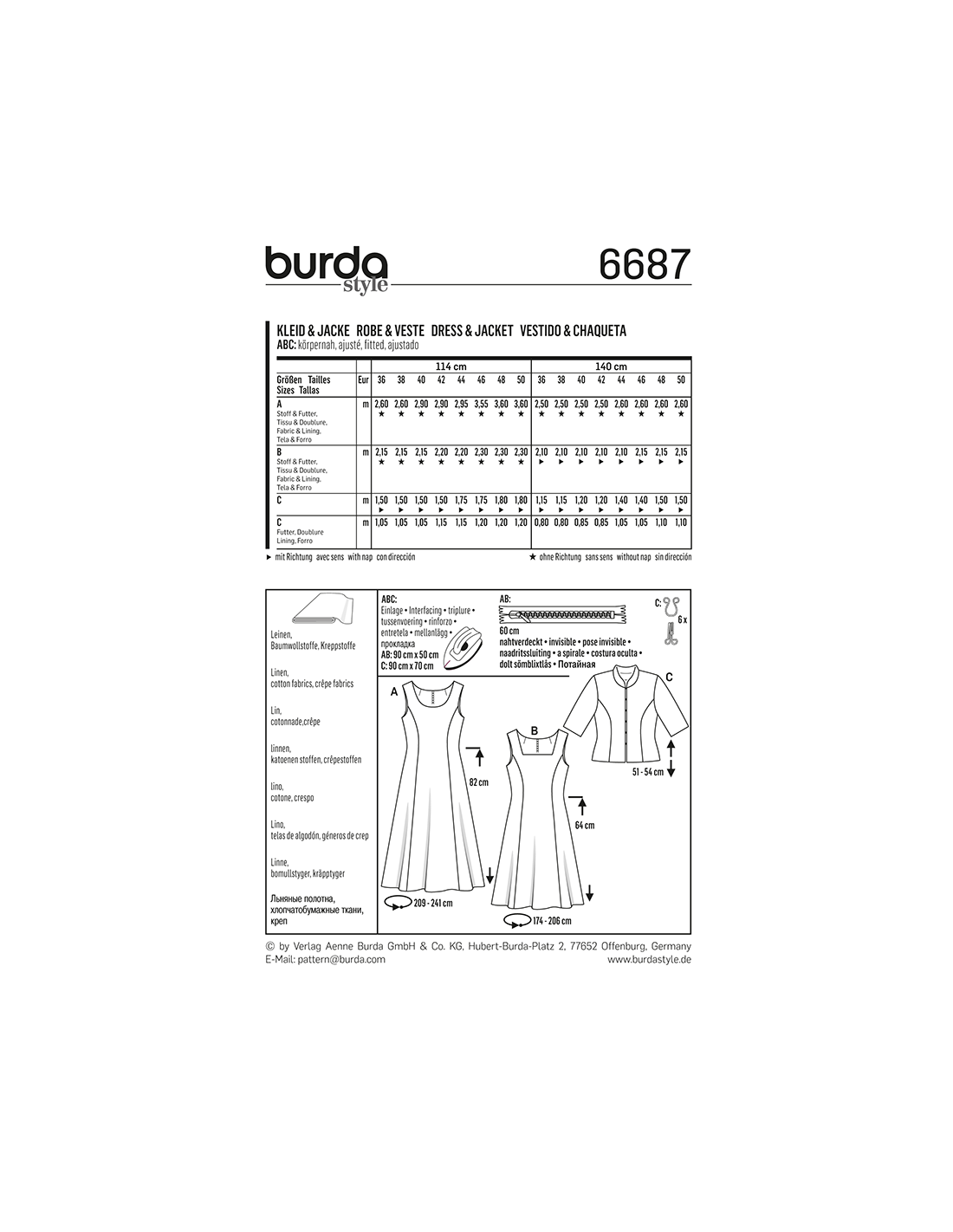 Vill du ha hjälp att tolka tygåtgången? Skicka ett mail till info@tygcenter.se med rubrik Burda 6687 så hjälper vi dig.