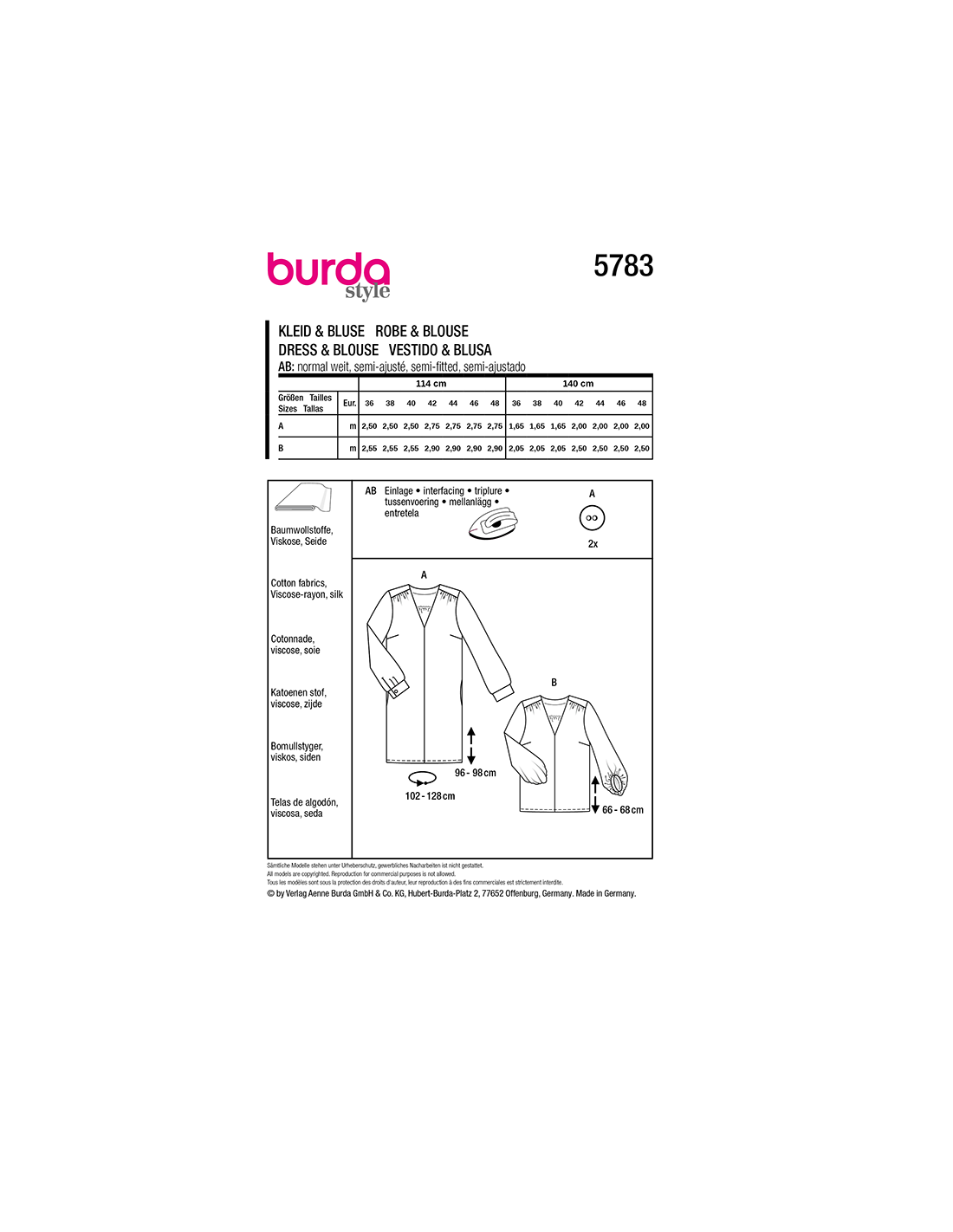Vill du ha hjälp att tolka tygåtgången? Skicka ett mail till info@tygcenter.se med rubrik Burda 5783 så hjälper vi dig.