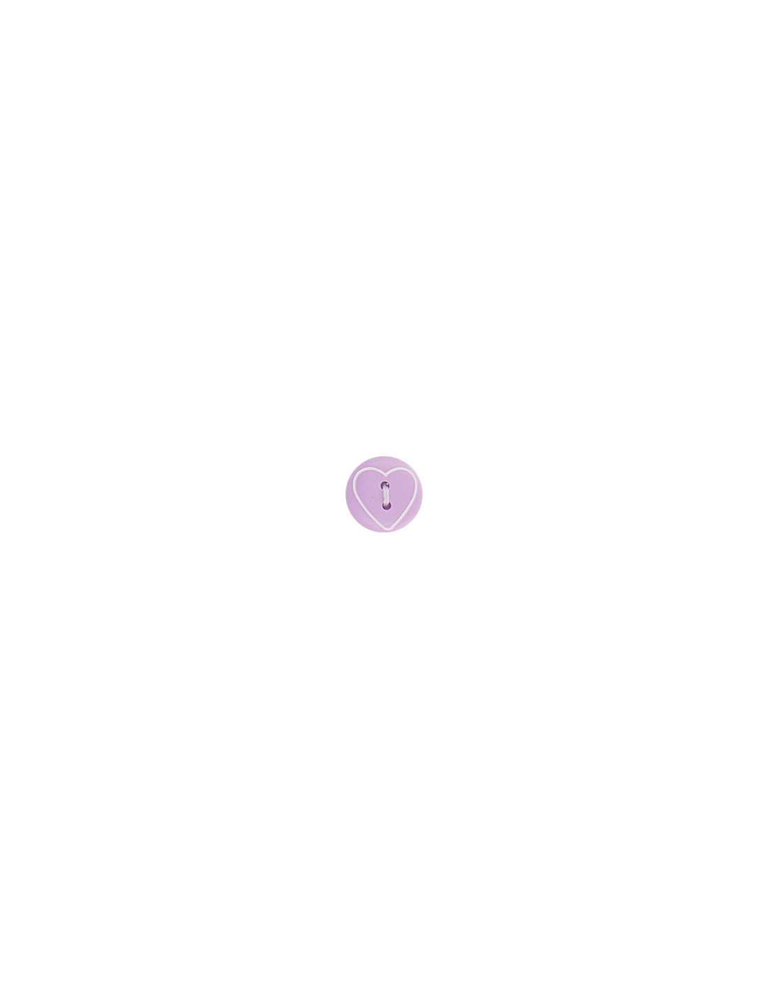 Dekorativ knapp i lila med vitt hjärta som ger ett charmigt och personligt uttryck. En fin detalj som passar perfekt till barnkläder, stickade plagg, accessoarer och kreativa sömnadsprojekt. Knappen kombinerar funktion med lekfull design och blir ett vackert blickfång på dina plagg.