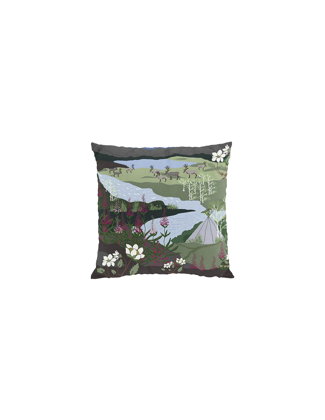 Kuddfodral sytt av tyget Fjällvandring Grön/Blå från Arvidssons Textil - ett mönster inspirerat av fjällvärlden med naturen i fokus. Ett stilrent kuddfodral som passar lika fint i vardagsrummet som i fjällstugan.