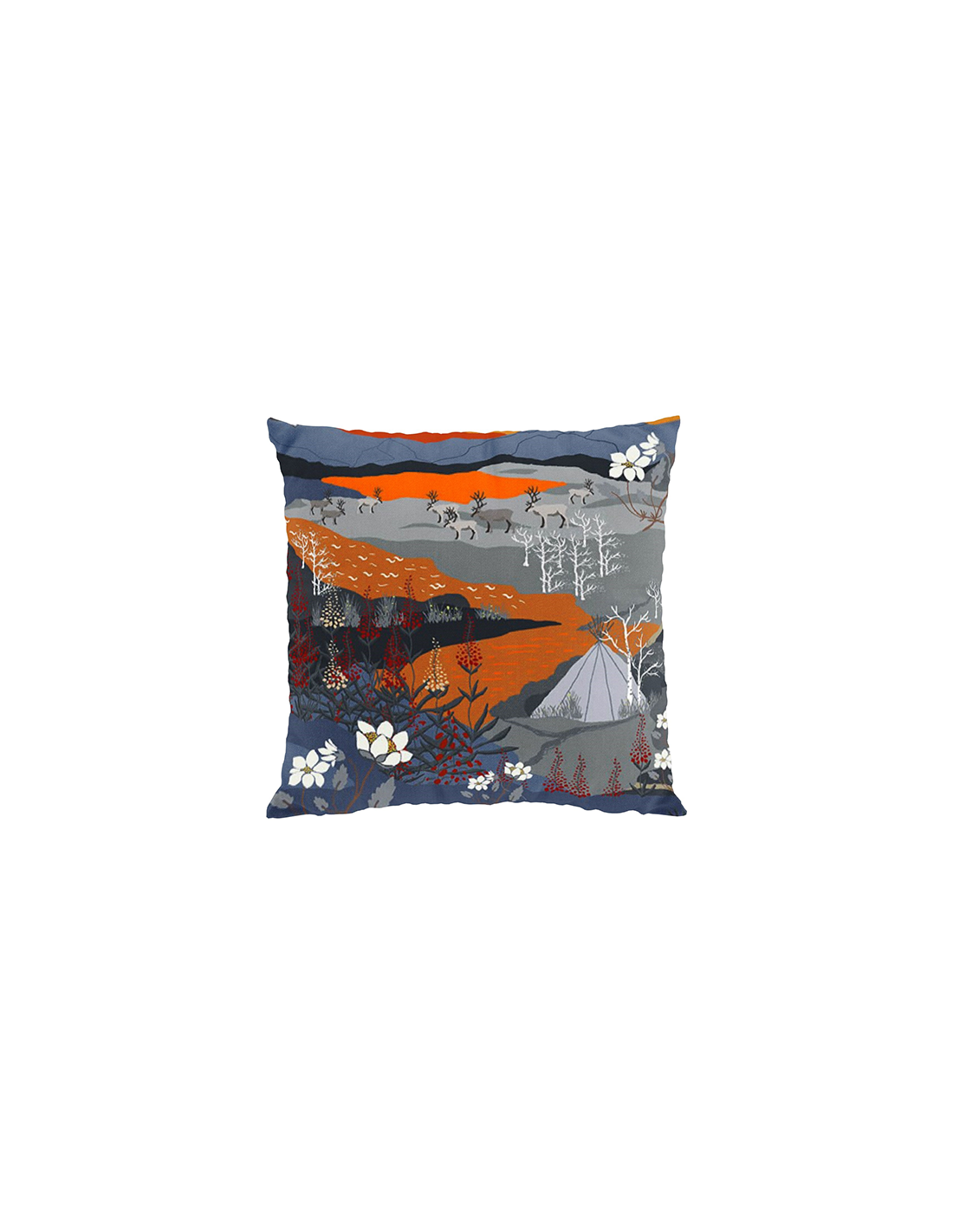 Kuddfodral sytt av tyget Fjällvandring Orange från Arvidssons Textil - ett mönster inspirerat av fjällvärlden med naturen i fokus. Ett stilrent kuddfodral som passar lika fint i vardagsrummet som i fjällstugan.