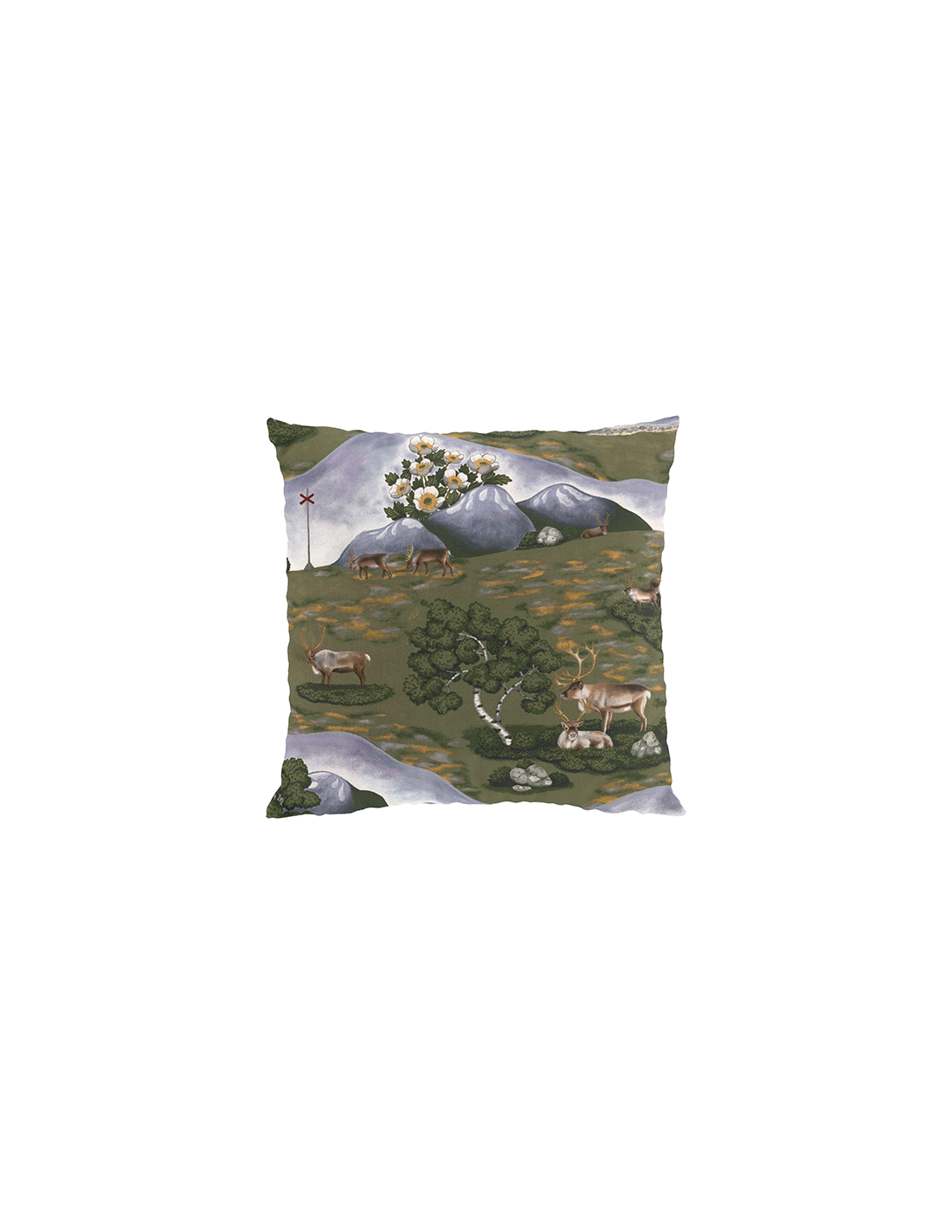 Ge ditt hem en känsla av nordisk natur med vårt kuddfodral sytt i det stämningsfulla tyget Renvandring Mörkgrön från Arvidssons Textil. Mönstret, inspirerat av den svenska fjällvärlden, föreställer renar och skapar ett lugnt men uttrycksfullt inslag i både moderna och klassiska miljöer.