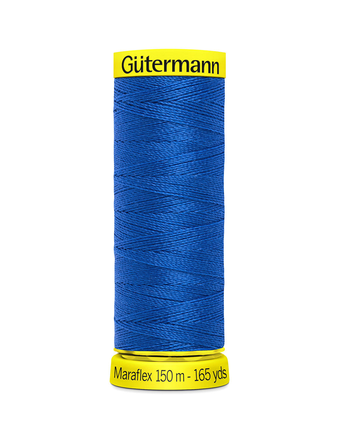 Blå elastisk sytråd från Gütermann, Maraflex no. 120, färgnummer 315.
