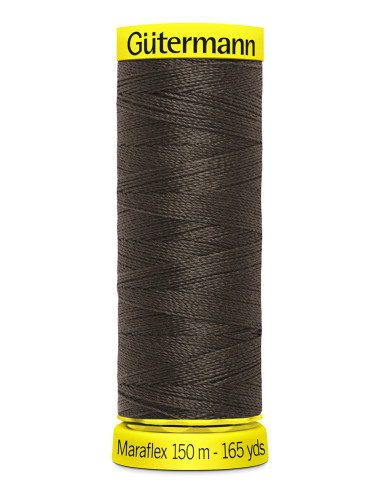Mörkbrun elastisk sytråd från Gütermann, Maraflex no. 120, färgnummer 696.