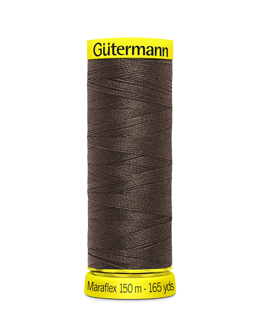 Mörkbrun elastisk sytråd från Gütermann, Maraflex no. 120, färgnummer 694.