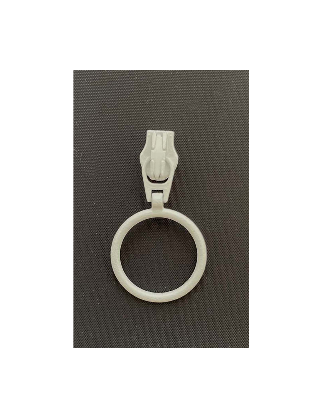 Vit löpare med ring. Skapa blixtlås som passar just ditt projekt. Dessa löpare säljes separat och är utformade att passa våra blixtlås YKK Blixtlås MV 4mm som finns i många olika färger. Mix & match - kombinera fritt blixtlås och löpare i samma färg eller skapa en kontrast som sticker ut. Blixtlåsen passar till kläder, väskor, necessärer, kuddar, inredning och andra sömnadsarbeten som ej kräver ett delbart blixtlås.