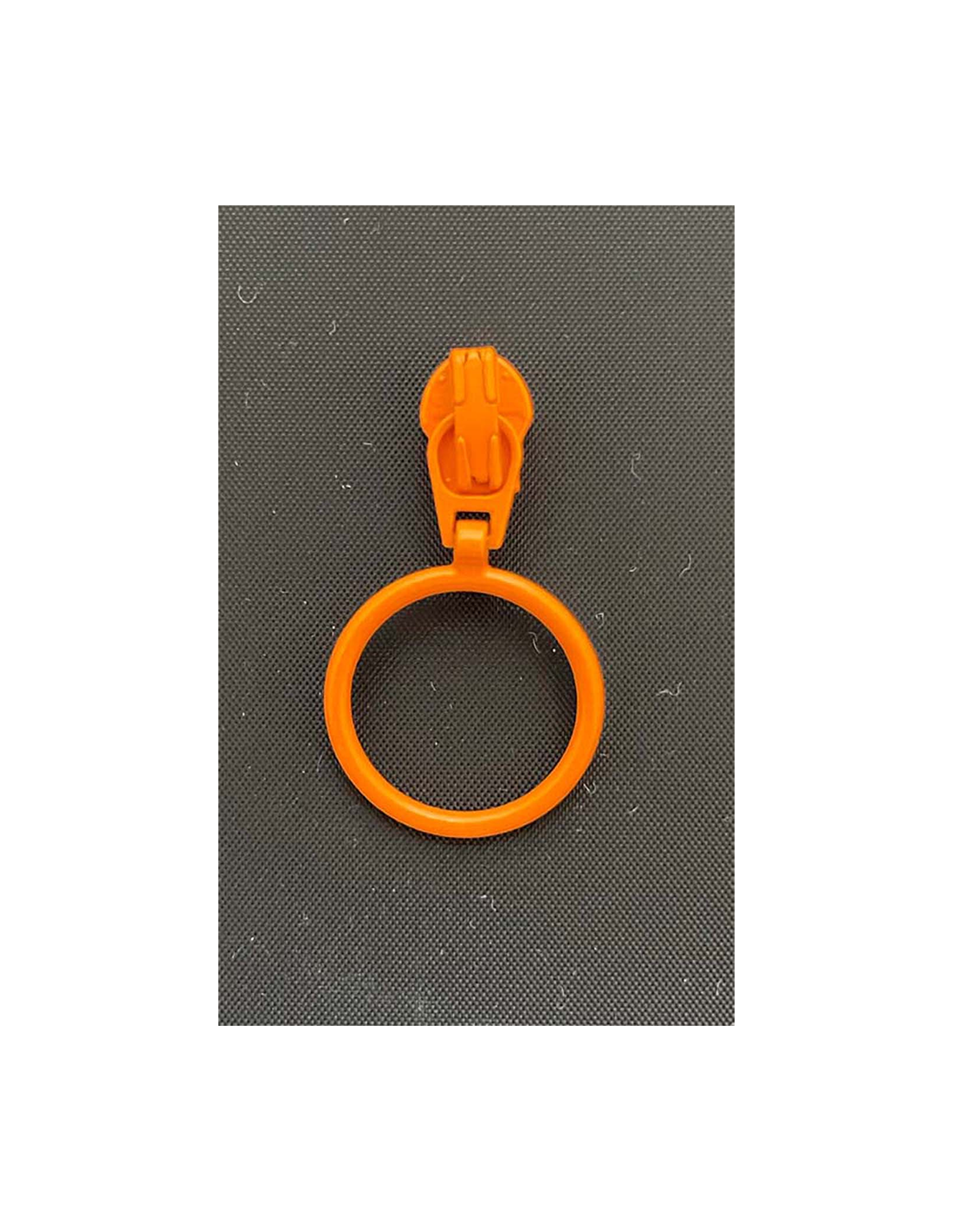 Orange löpare med ring. Skapa blixtlås som passar just ditt projekt. Dessa löpare säljes separat och är utformade att passa våra blixtlås YKK Blixtlås MV 4mm som finns i många olika färger. Mix & match - kombinera fritt blixtlås och löpare i samma färg eller skapa en kontrast som sticker ut. Blixtlåsen passar till kläder, väskor, necessärer, kuddar, inredning och andra sömnadsarbeten som ej kräver ett delbart blixtlås.