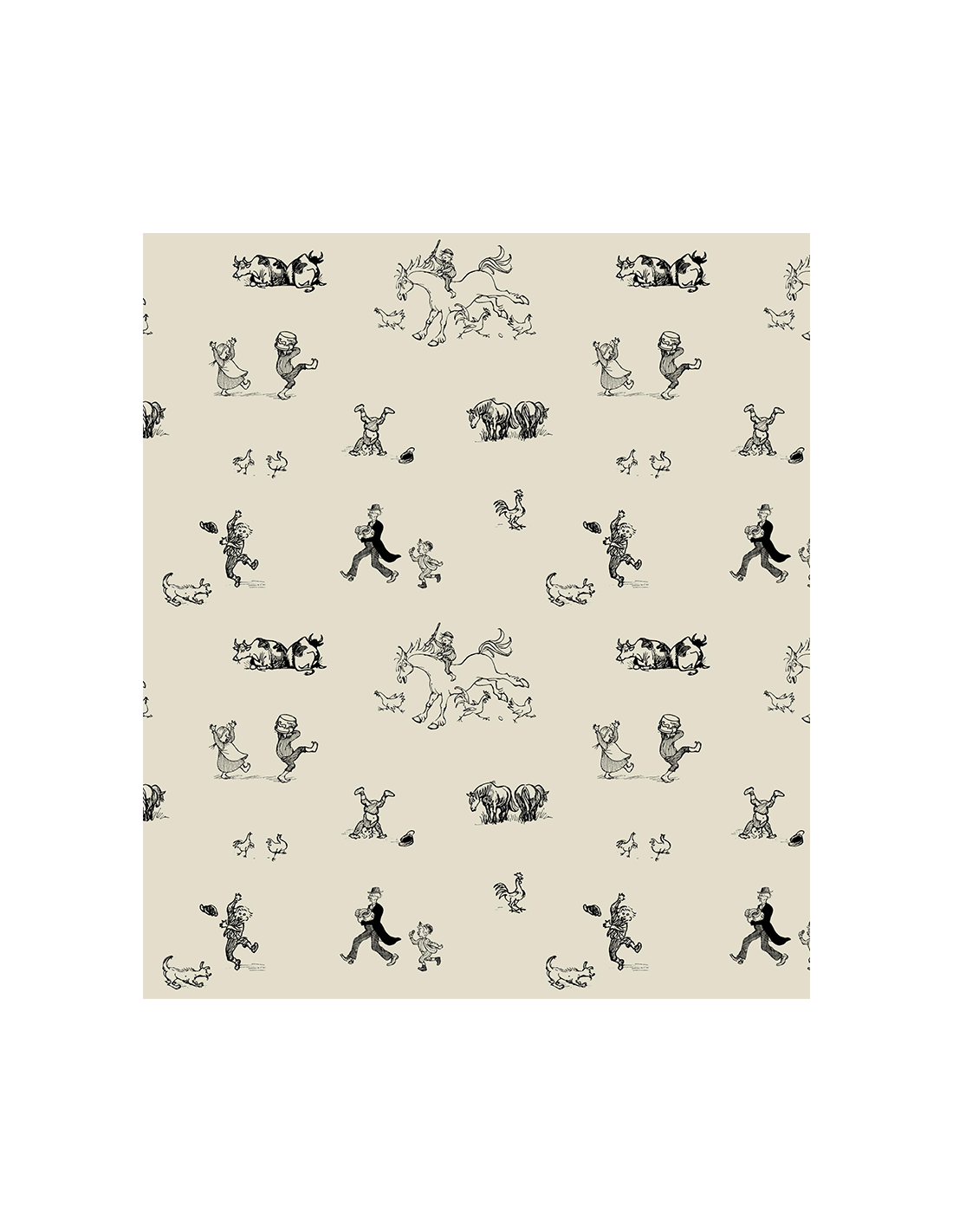 Stretchigt tyg från Arvidssons Textil med svart tryck av Emil i Lönneberga från Astrid Lindgren, beige bottenfärg. Lämpar sig bäst till sömnad av kläder så som t-shirt, klänning, tights, body m.m.