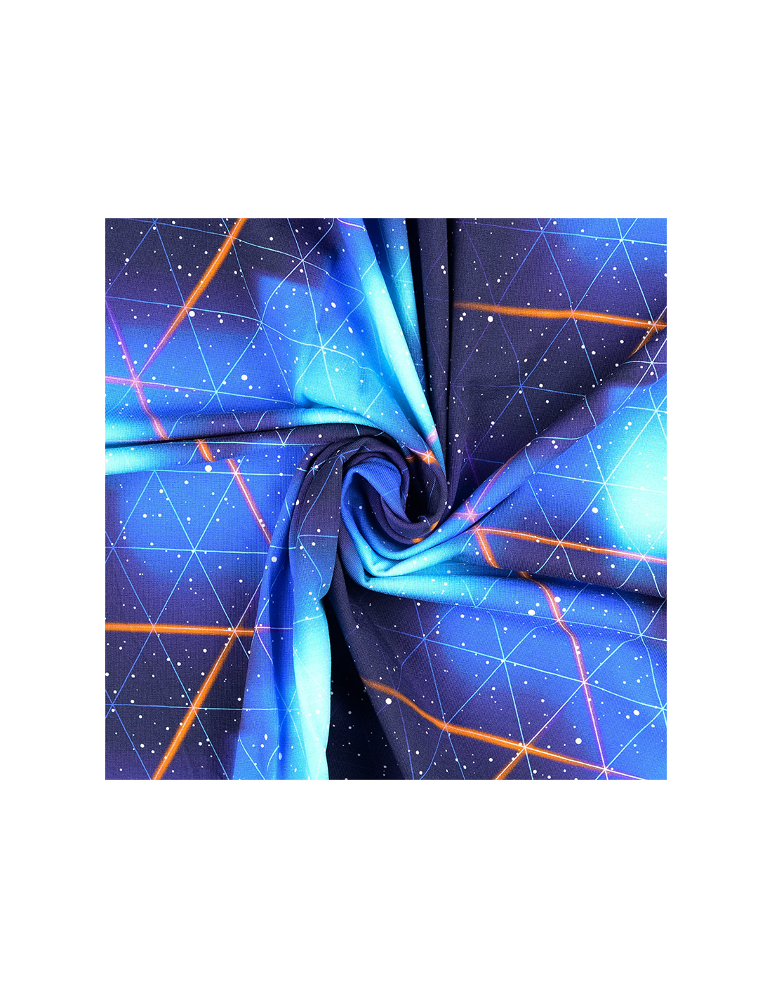 Bomullsjersey med rymdinspirerat mönster. Tunt stretchigt tyg som lämpar sig bäst till klädsömnad så som t-shirts, klänningar, toppar, leggings m.m.