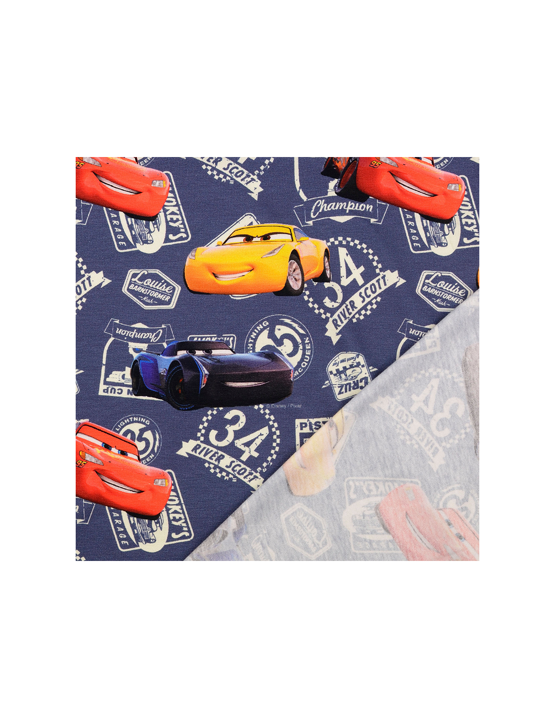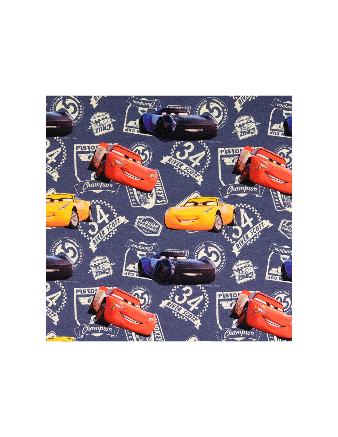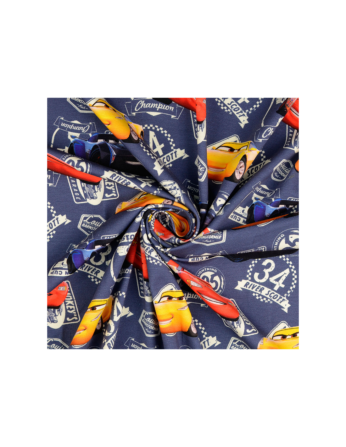 Bomullsjersey med Blixten McQueen. Tunt stretchigt tyg som lämpar sig bäst till klädsömnad så som t-shirts, tröjor, klänningar, mössor, leggings m.m.