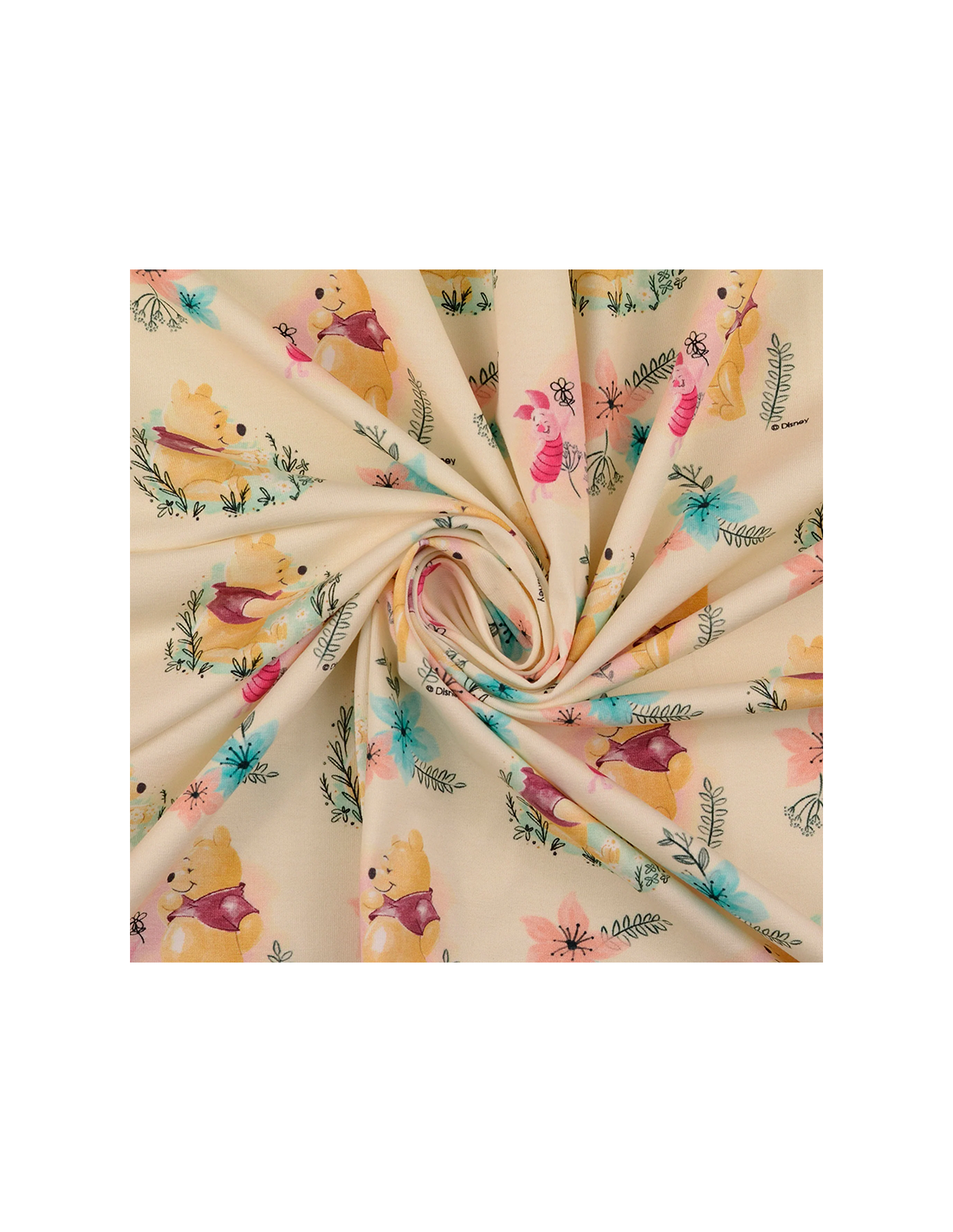 Bomullsjersey med Nalle Puh. Tunt stretchigt tyg som lämpar sig bäst till klädsömnad så som t-shirts, tröjor, klänningar, mössor, leggings m.m.