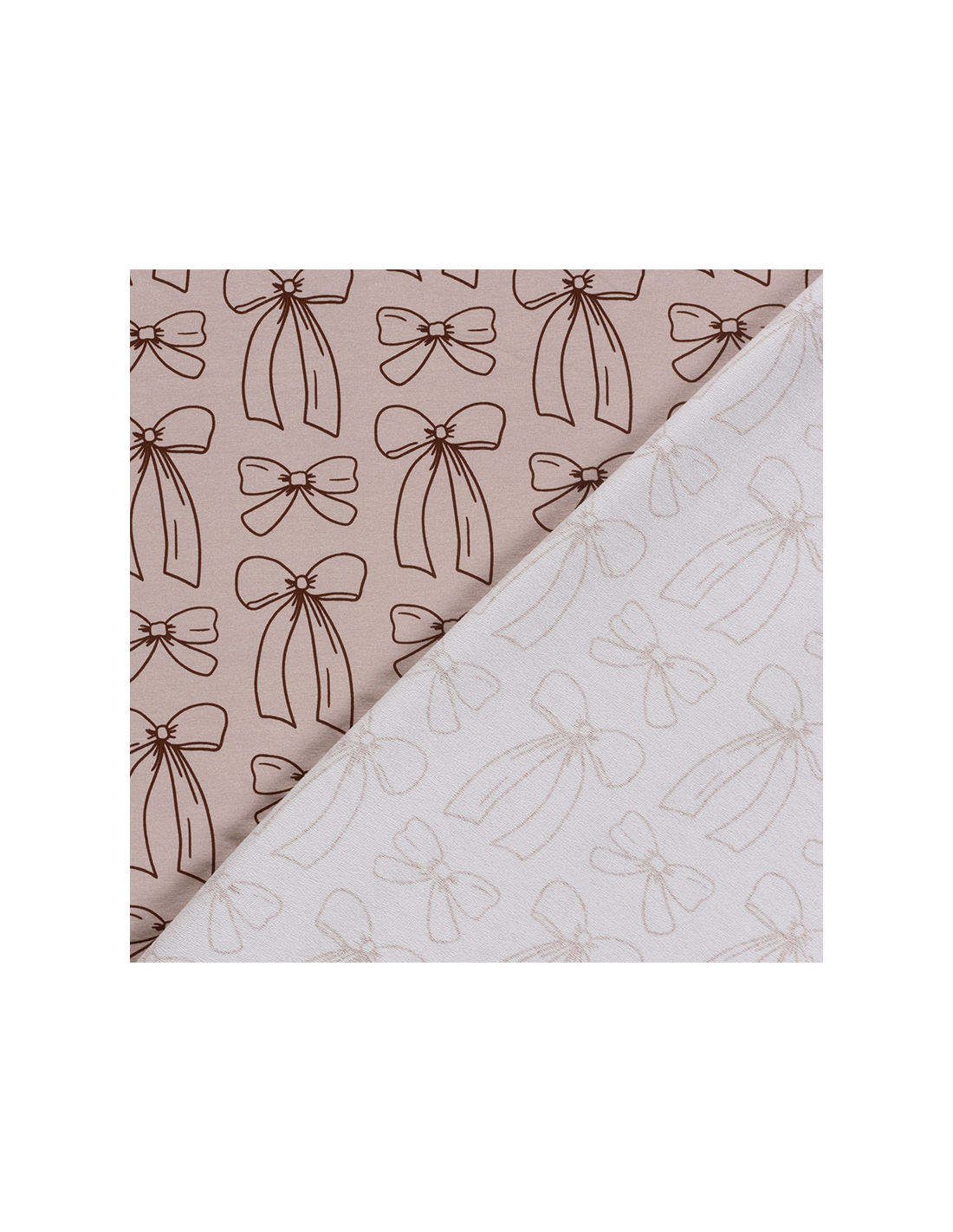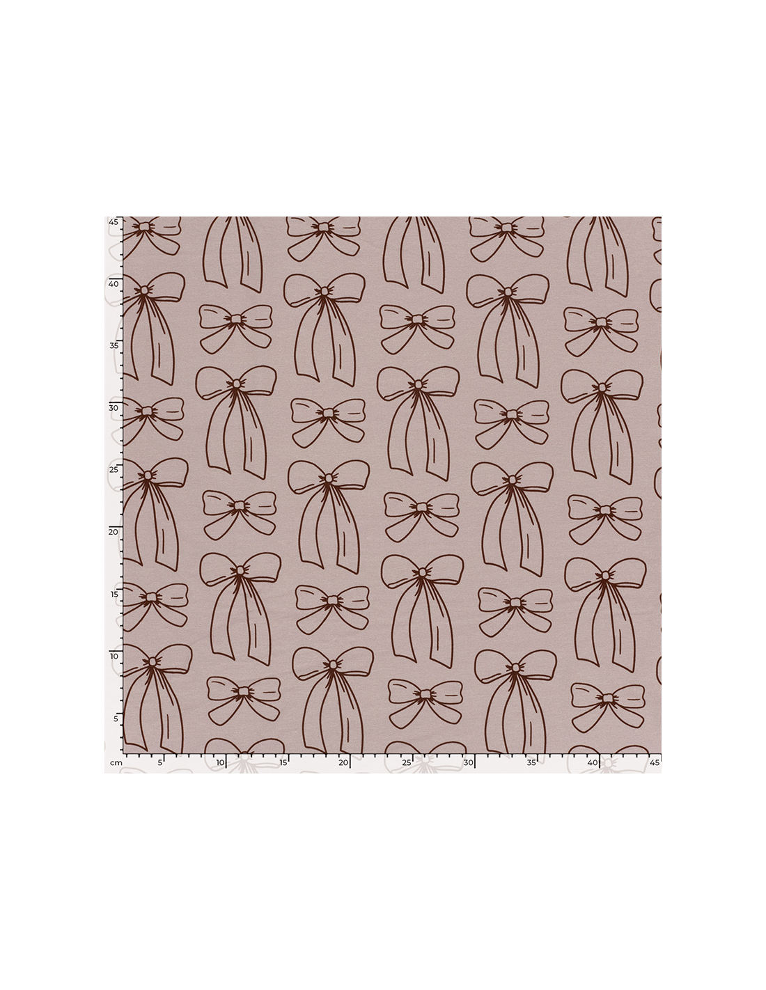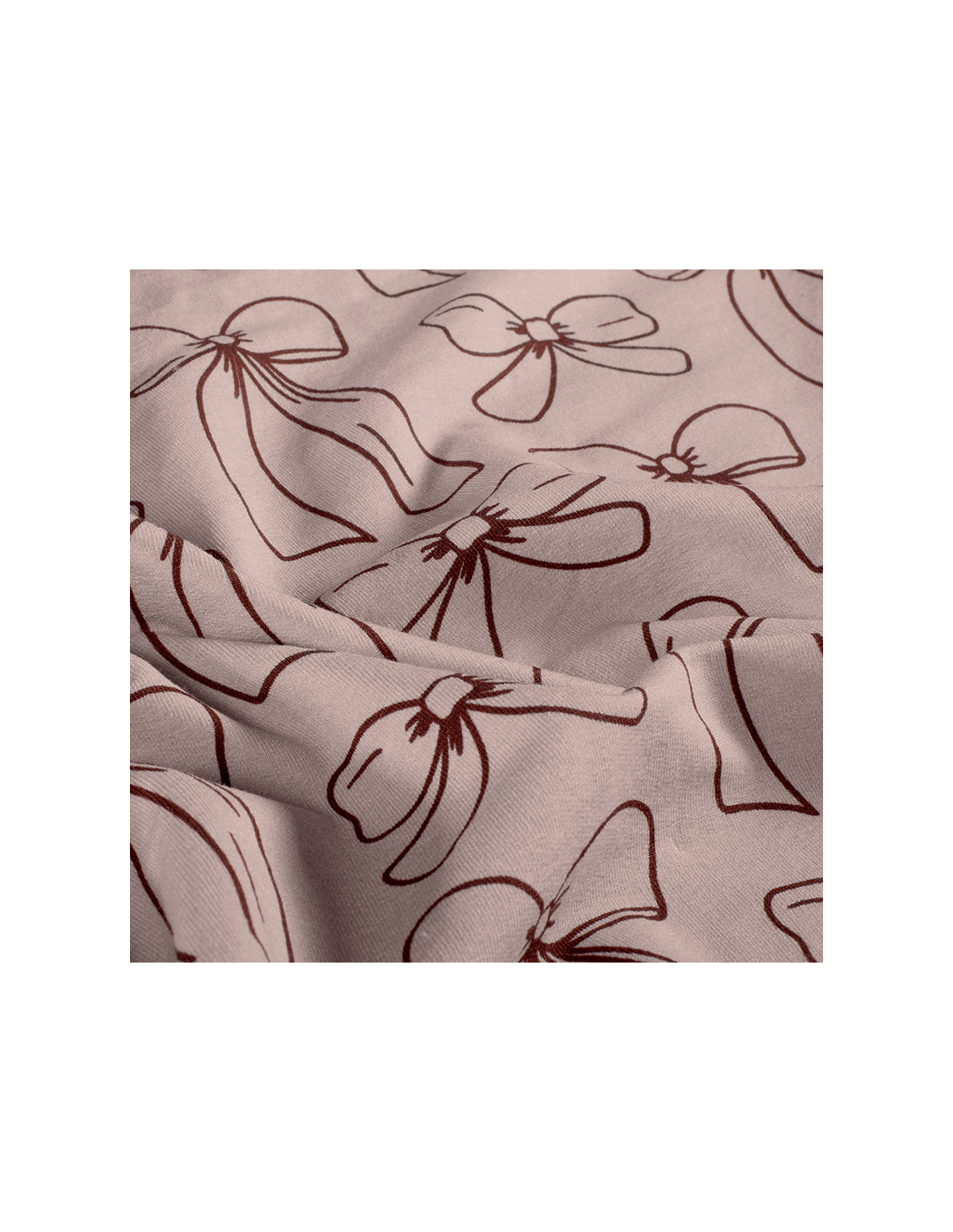 Ett mjukt och följsamt french terry-tyg med ljust rosa/gammelrosa botten och dekorativa rosetter i en djup bordeauxnyans. Tyget har en slät utsida med tryck och en mjuk öglad baksida som gör det bekvämt att bära. Perfekt till tröjor, klänningar, hoodies och barnkläder där du vill kombinera komfort med ett lekfullt och charmigt uttryck.
