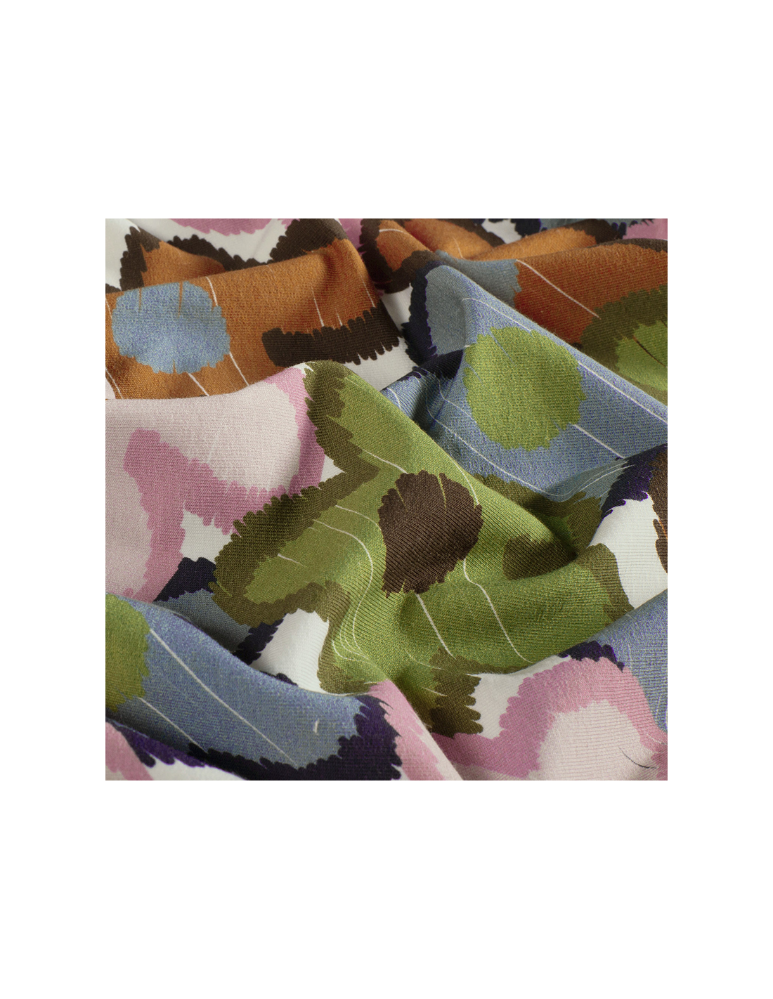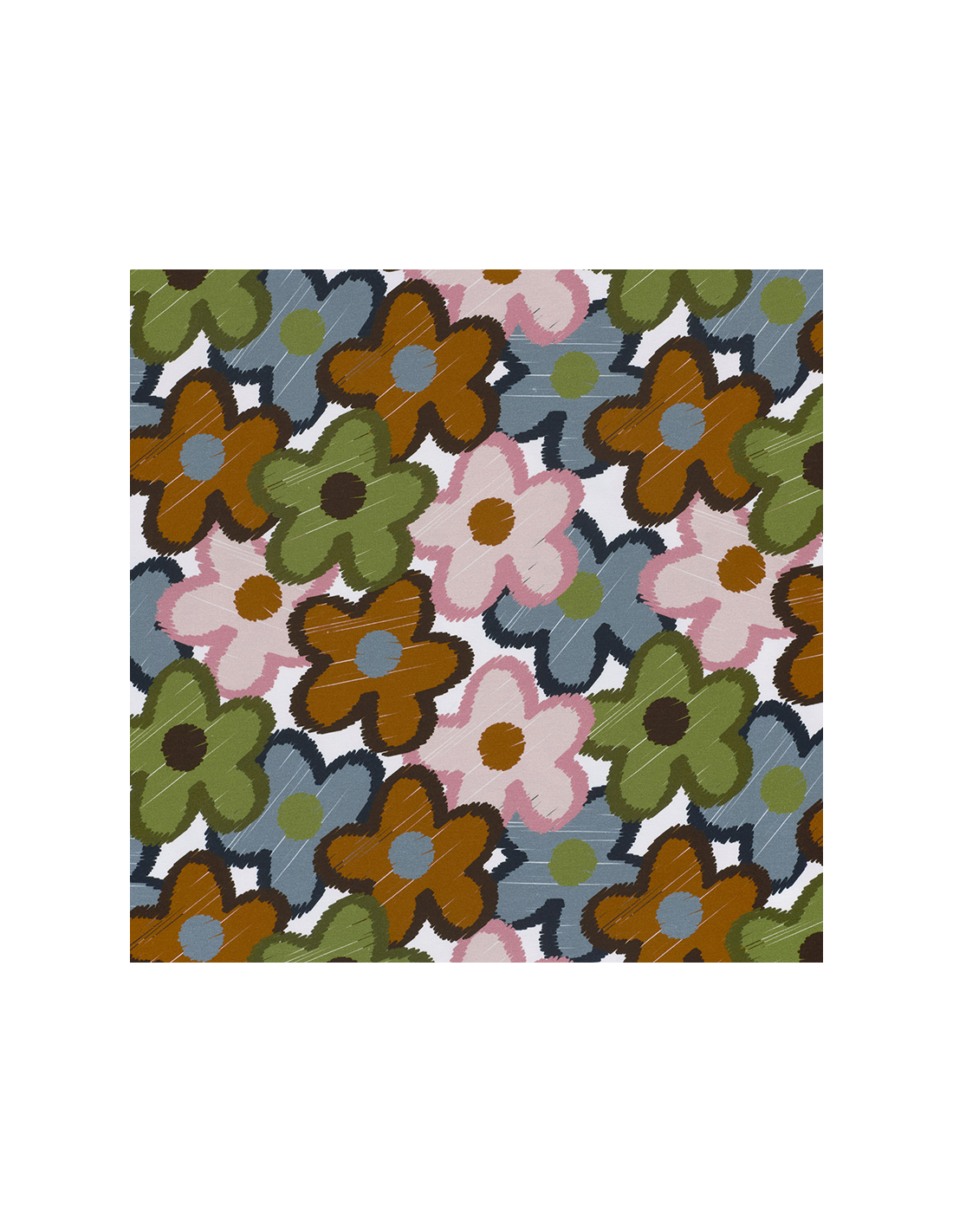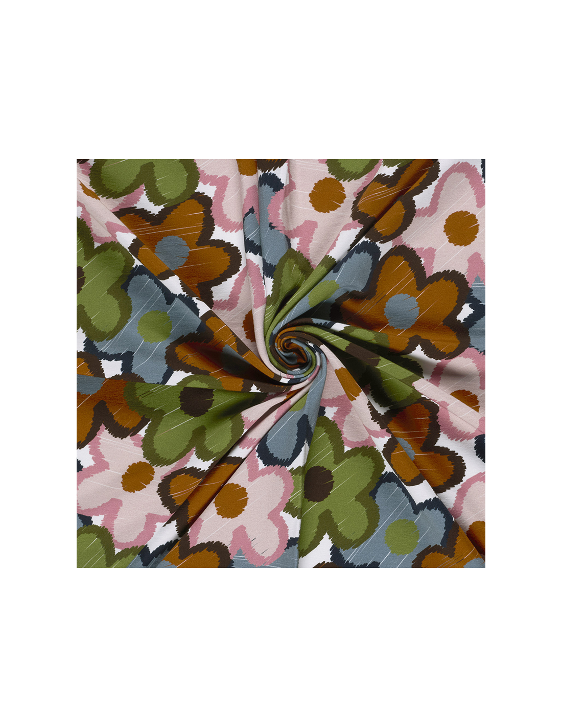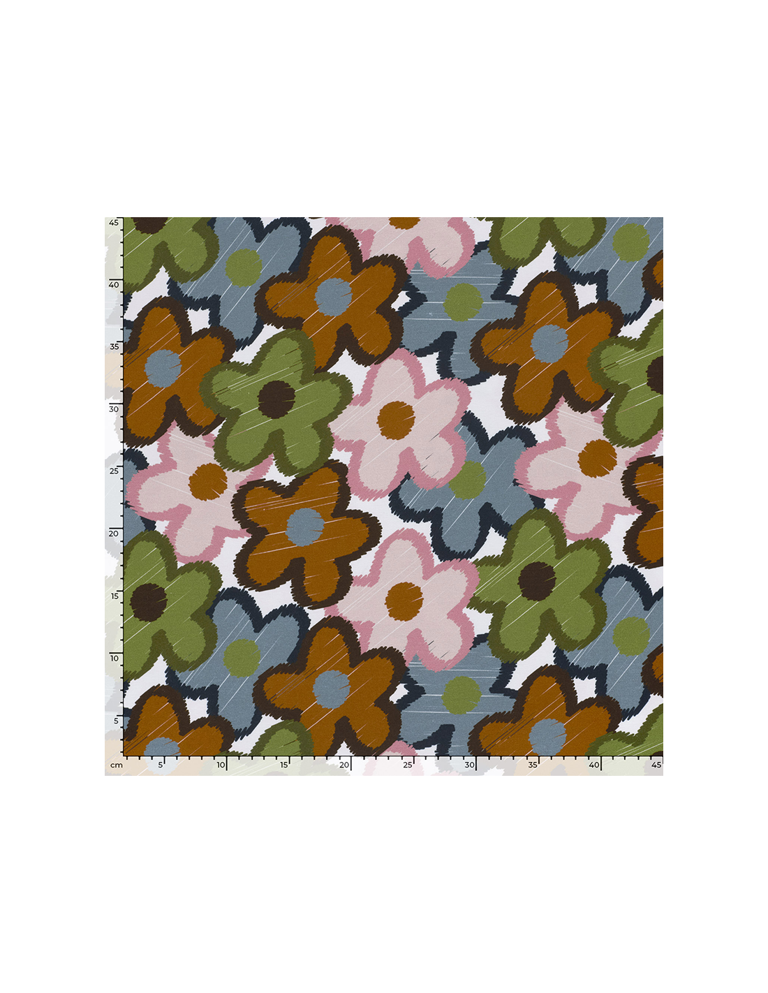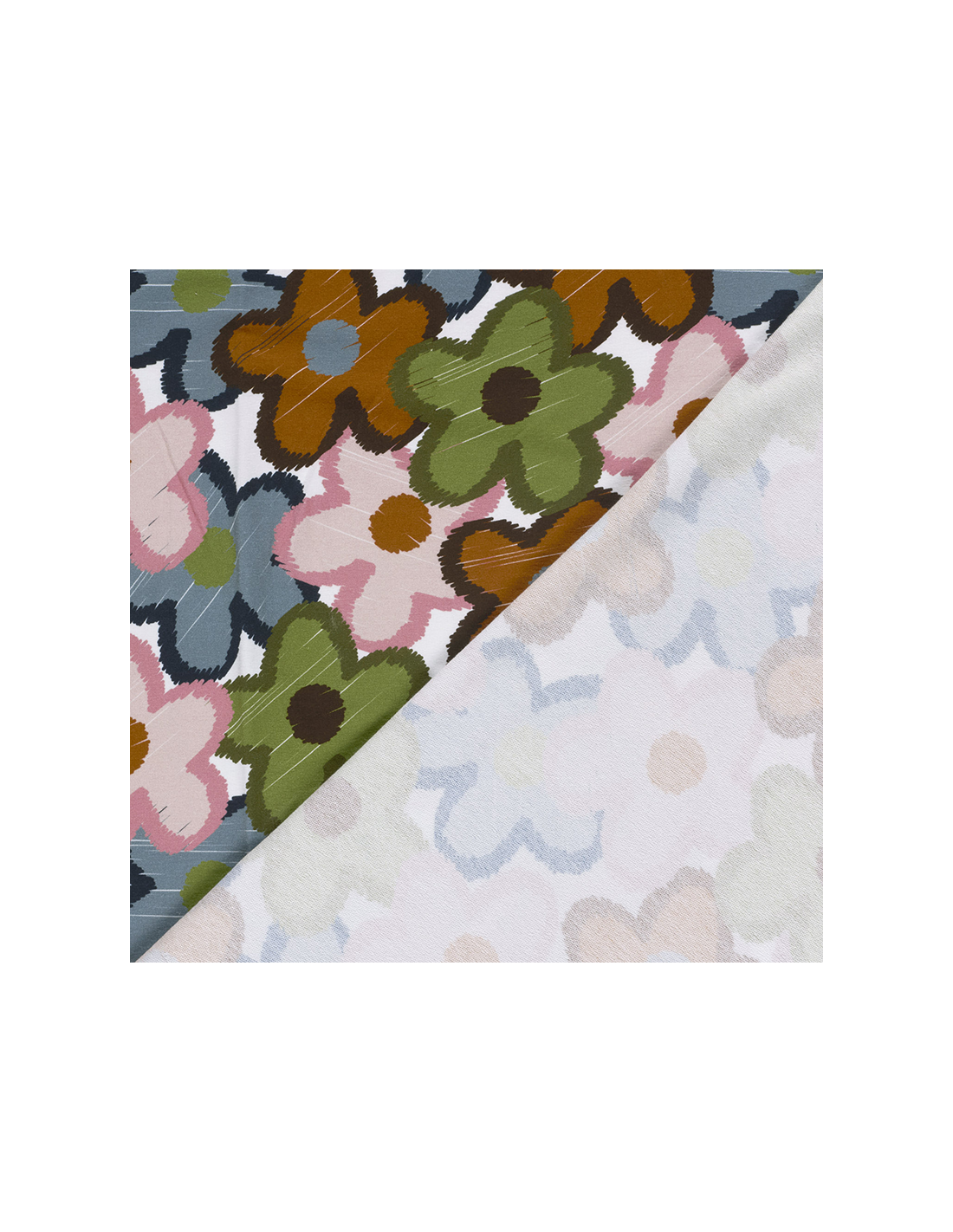 Detta härliga french terry-tyg pryds av stora, uttrycksfulla blommor i grönt, rosa, orange och blått som skapar ett livfullt och modernt mönster. Färgkombinationen ger tyget en fräsch och lekfull känsla som passar perfekt för både barn- och vuxenplagg. French terry är ett mjukt och följsamt trikåtyg med slät utsida och öglad baksida. Perfekt till tröjor, hoodies, klänningar, kjolar, barnkläder och mjukisbyxor.