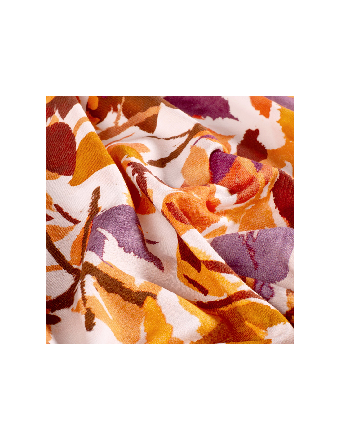Ett mjukt och bekvämt french terry-tyg med ett livfullt mönster av färgstarka blad i olika nyanser av orange och lila. Färgkombinationen ger tyget ett modernt och lekfullt uttryck som passar perfekt till både barn- och vuxenplagg. De färgglada bladen ger ett unikt och iögonfallande resultat i dina sömnadsprojekt - perfekt när du vill skapa något som verkligen sticker ut.