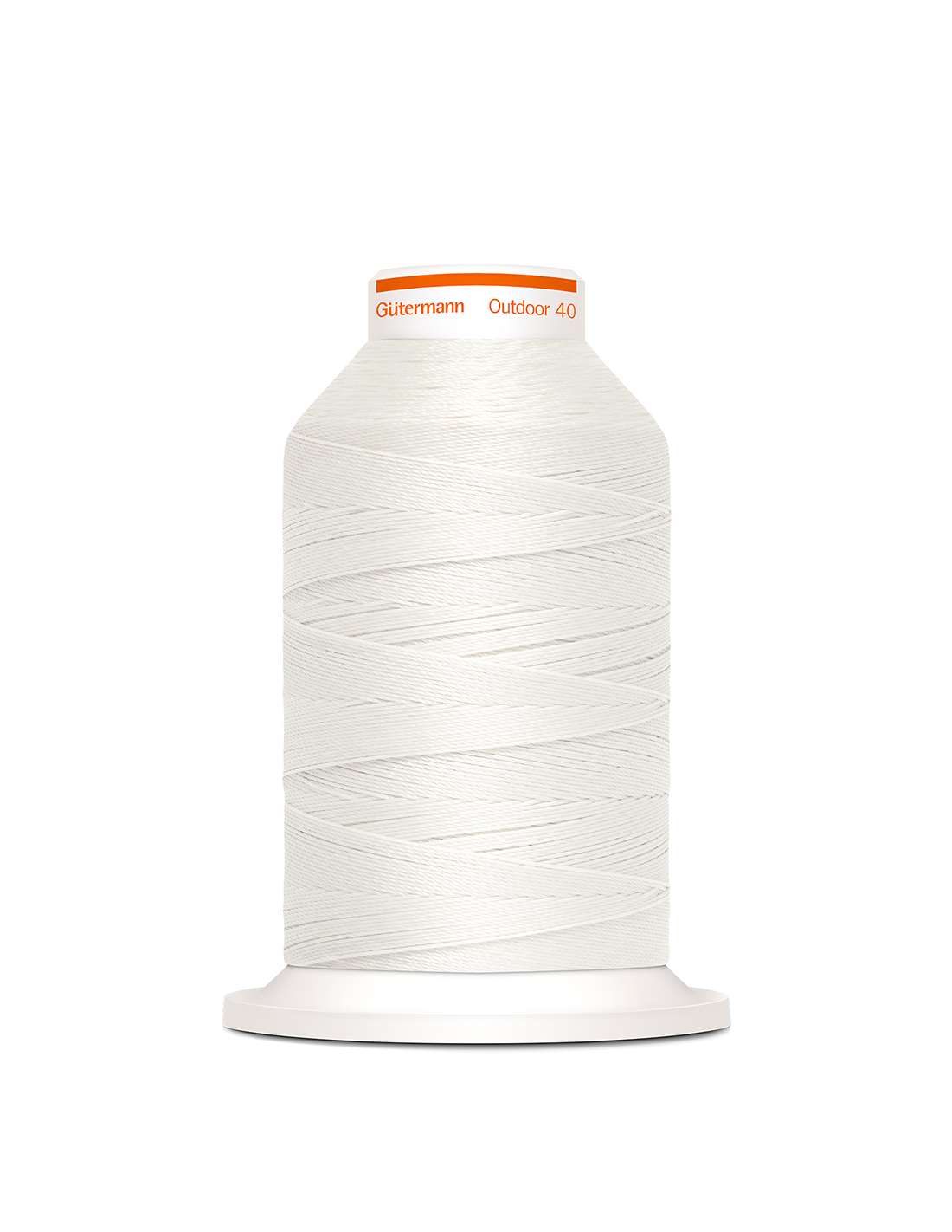 Gütermann Outdoor 40 400m Col. 9455, vit tråd, speciellt framtagen för utomhusprojekt. Sömmar som utsätts för regn, snö, sol, smuts, saltvatten eller vind behöver tåla mycket, lätta att rengöra och ska torka så snabbt som möjligt, vilket denna slitstarka tråd gör.