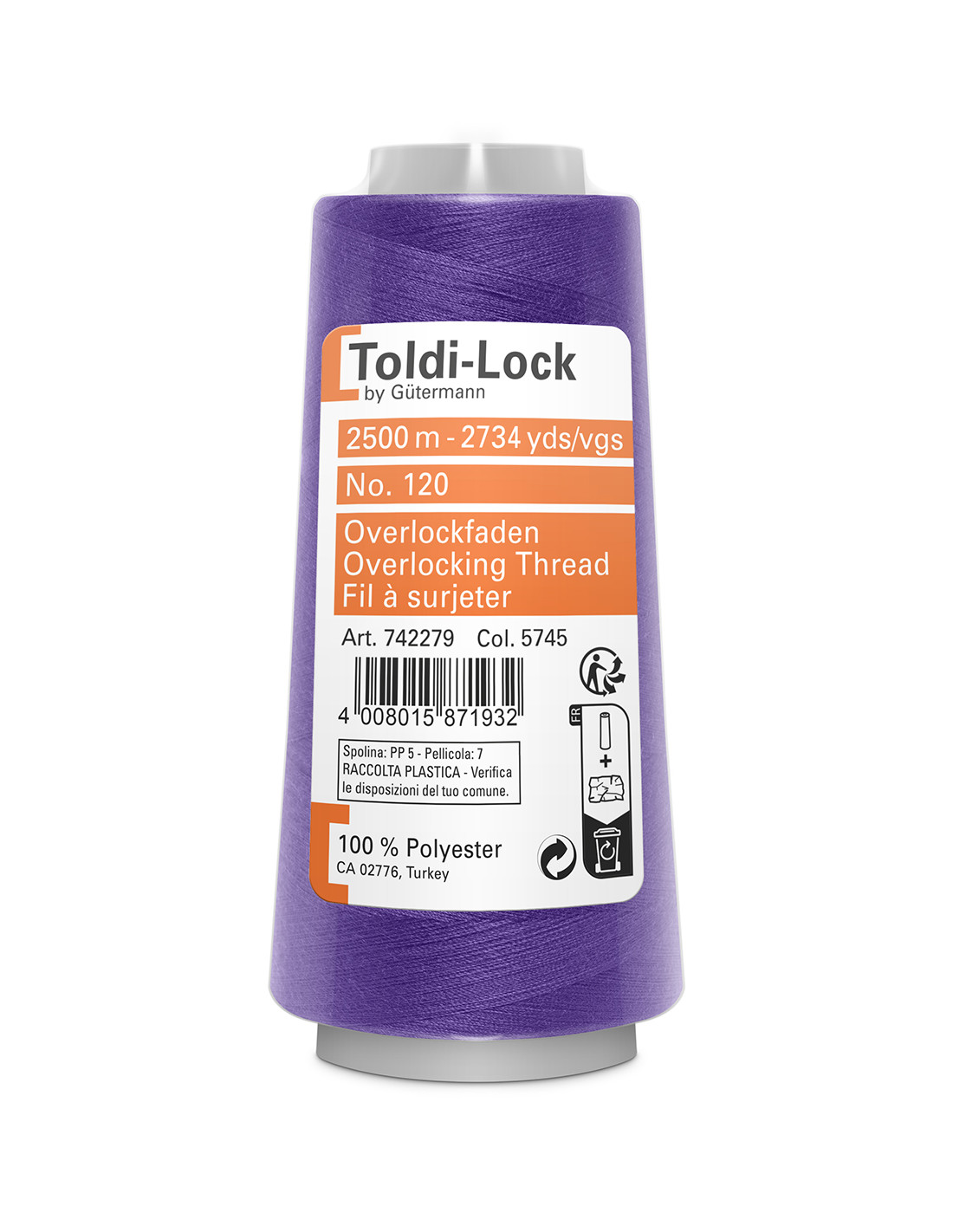 2500 meter overlocktråd från Gütermann, färgnummer 5745, lila.