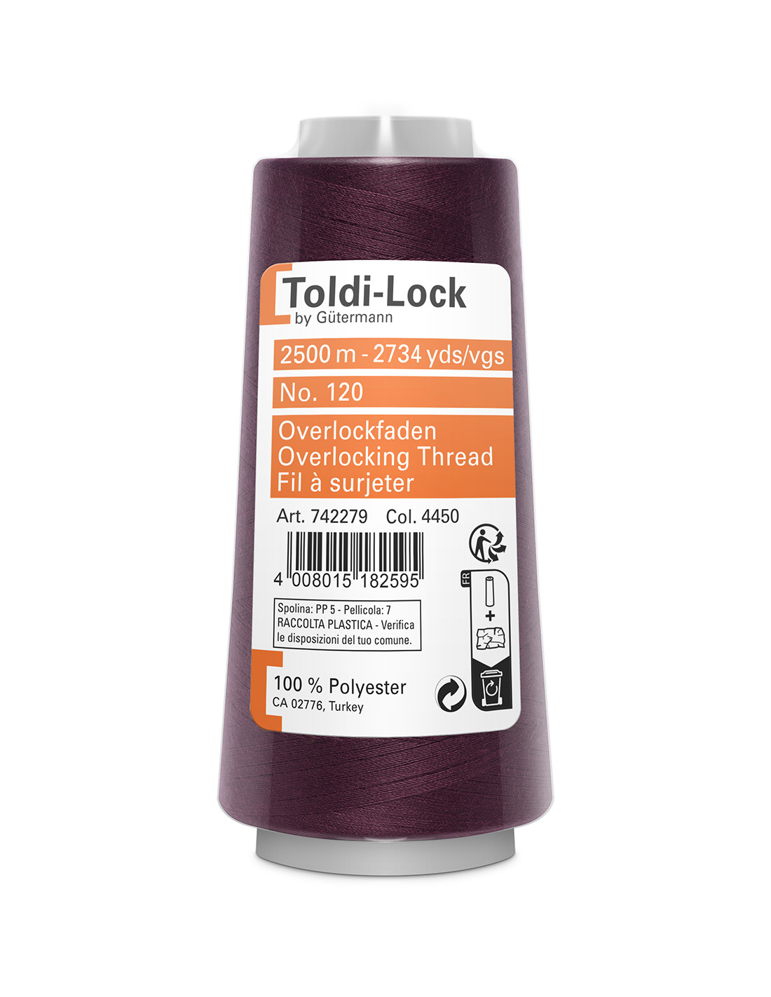 2500 meter overlocktråd från Gütermann, färgnummer 4450, burgundy.