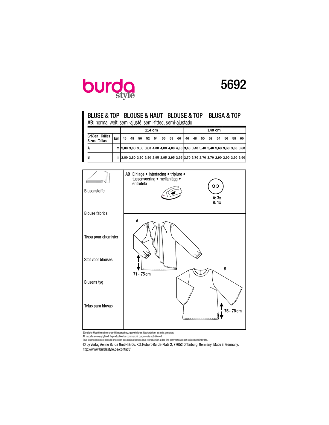 Vill du ha hjälp att tolka tygåtgången? Skicka ett mail till info@tygcenter.se med rubrik Burda 5692 så hjälper vi dig.