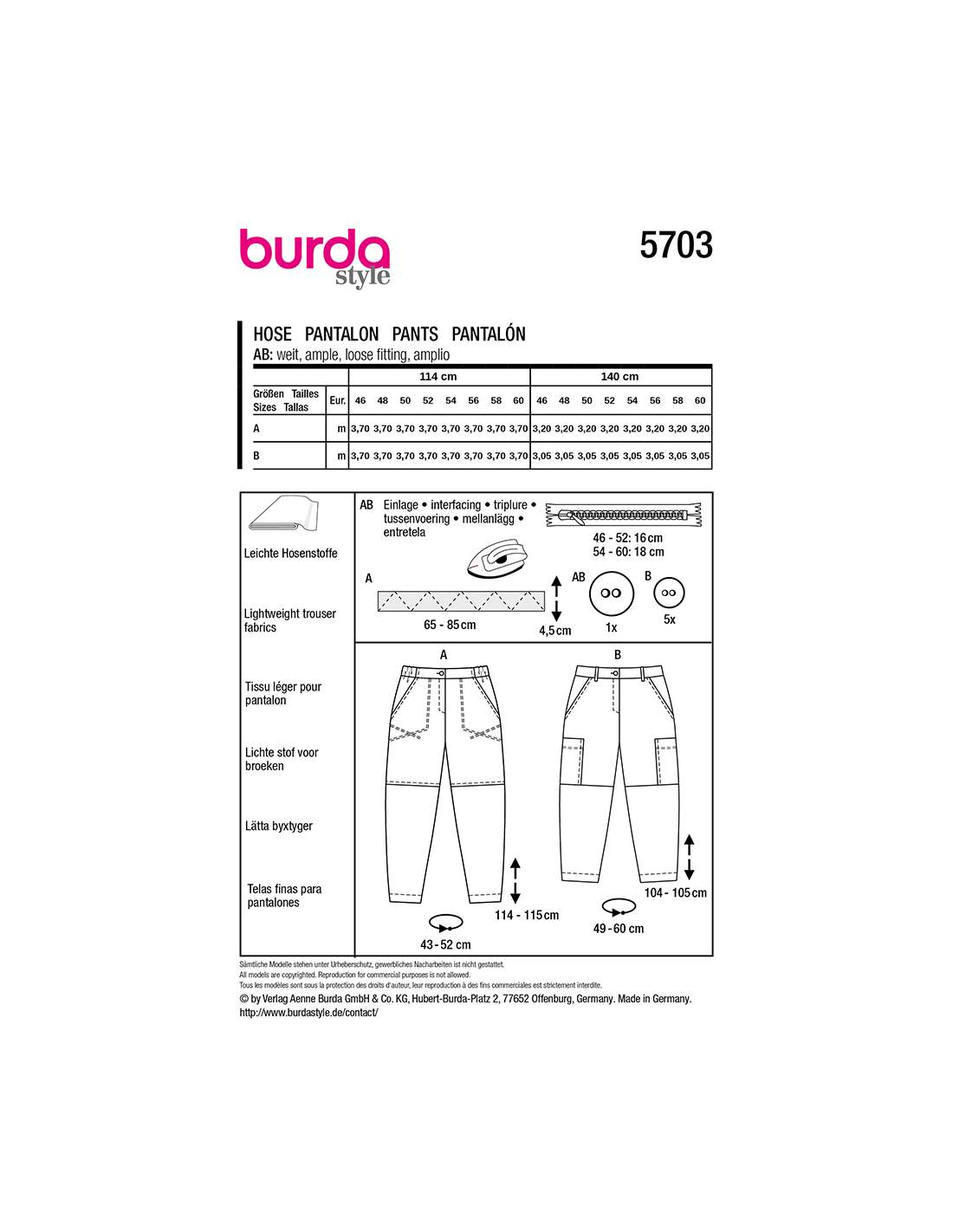 Vill du ha hjälp att tolka tygåtgången? Skicka ett mail till info@tygcenter.se med rubrik Burda 5703 så hjälper vi dig.