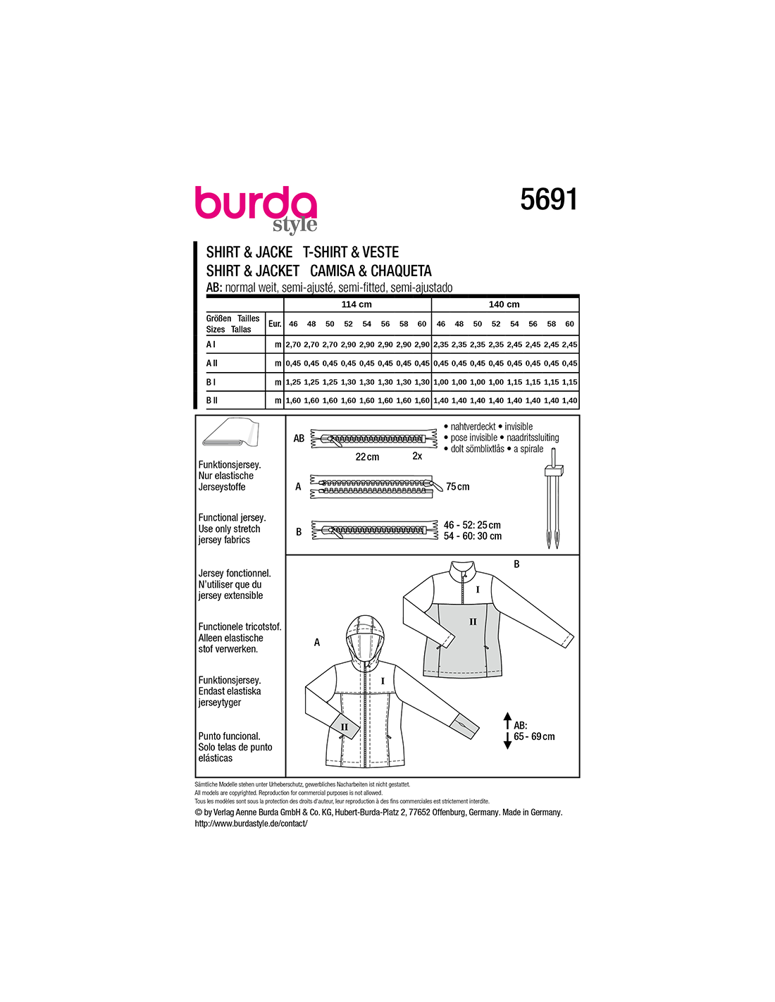 Vill du ha hjälp att tolka tygåtgången? Skicka ett mail till info@tygcenter.se med rubrik Burda 5691 så hjälper vi dig.