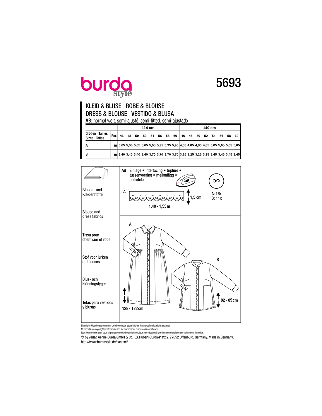 Vill du ha hjälp att tolka tygåtgången? Skicka ett mail till info@tygcenter.se med rubrik Burda 5693 så hjälper vi dig.