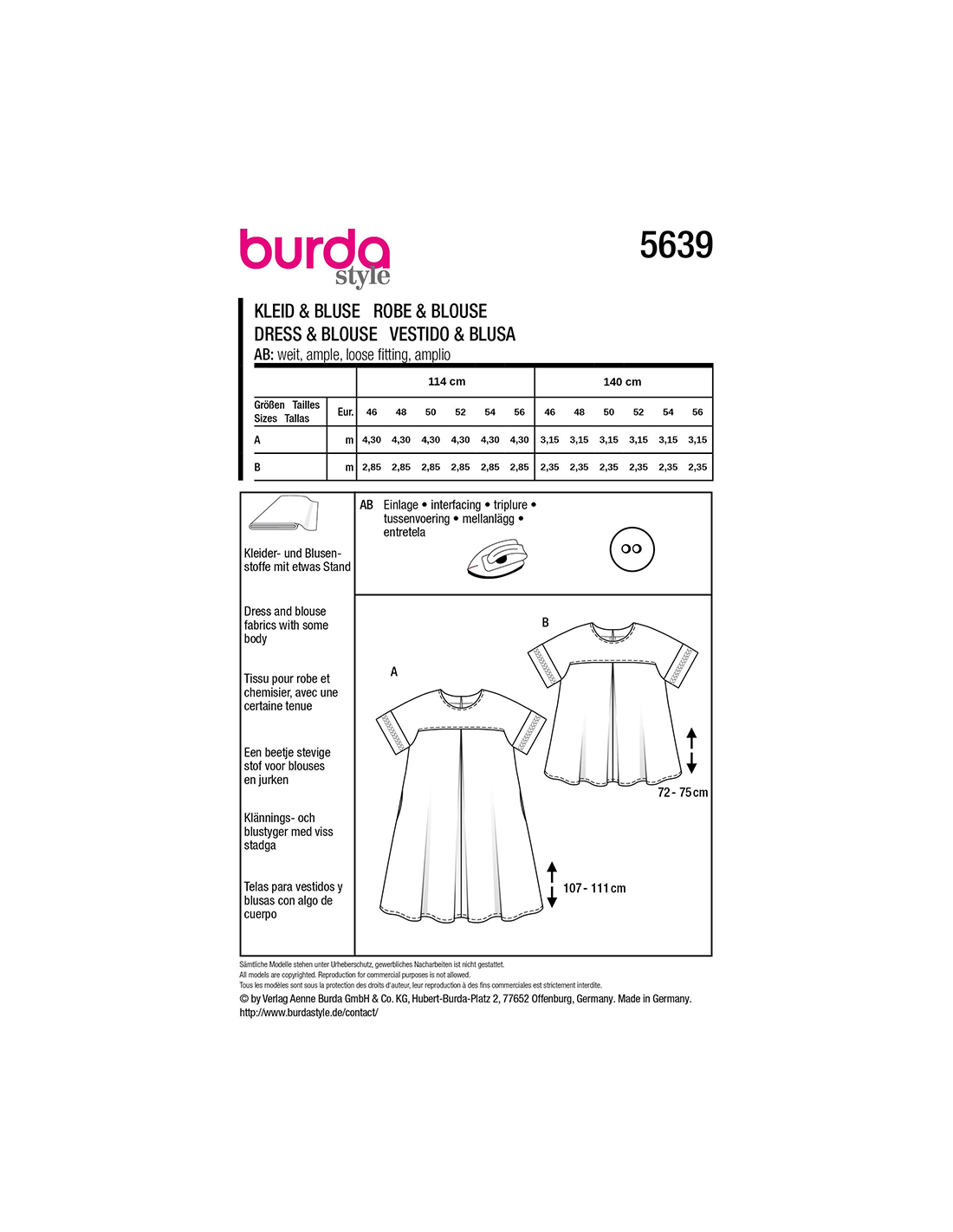 Vill du ha hjälp att tolka tygåtgången? Skicka ett mail till info@tygcenter.se med rubrik Burda 5639 så hjälper vi dig.