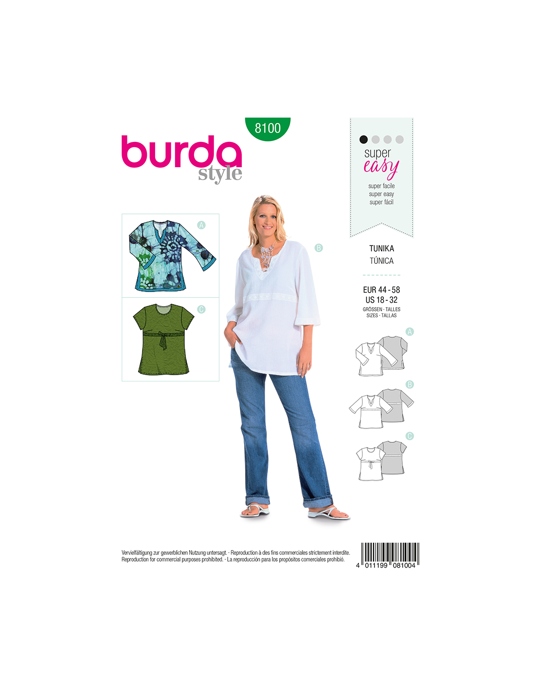 Burda symönster 8100 - Plus Size - Strl 44-58