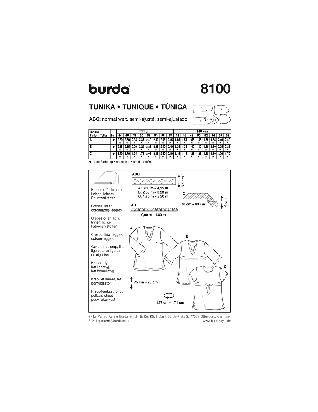 Vill du ha hjälp att tolka tygåtgången? Skicka ett mail till info@tygcenter.se med rubrik Burda 8100 så hjälper vi dig.
