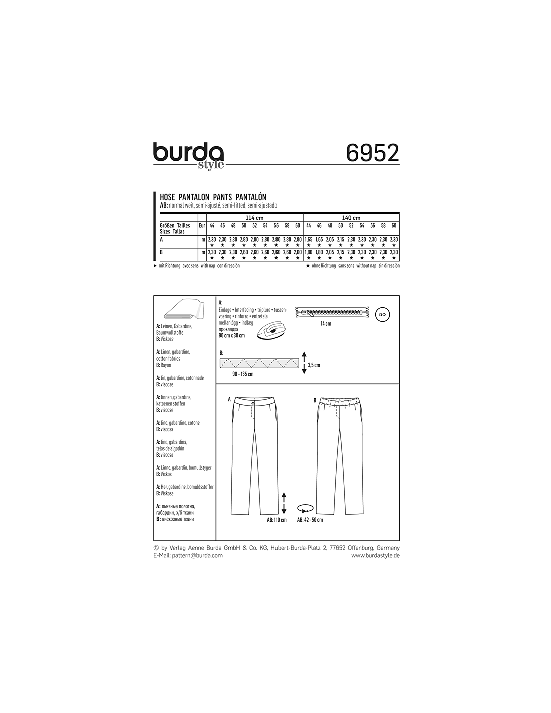Vill du ha hjälp att tolka tygåtgången? Skicka ett mail till info@tygcenter.se med rubrik Burda 6952 så hjälper vi dig.