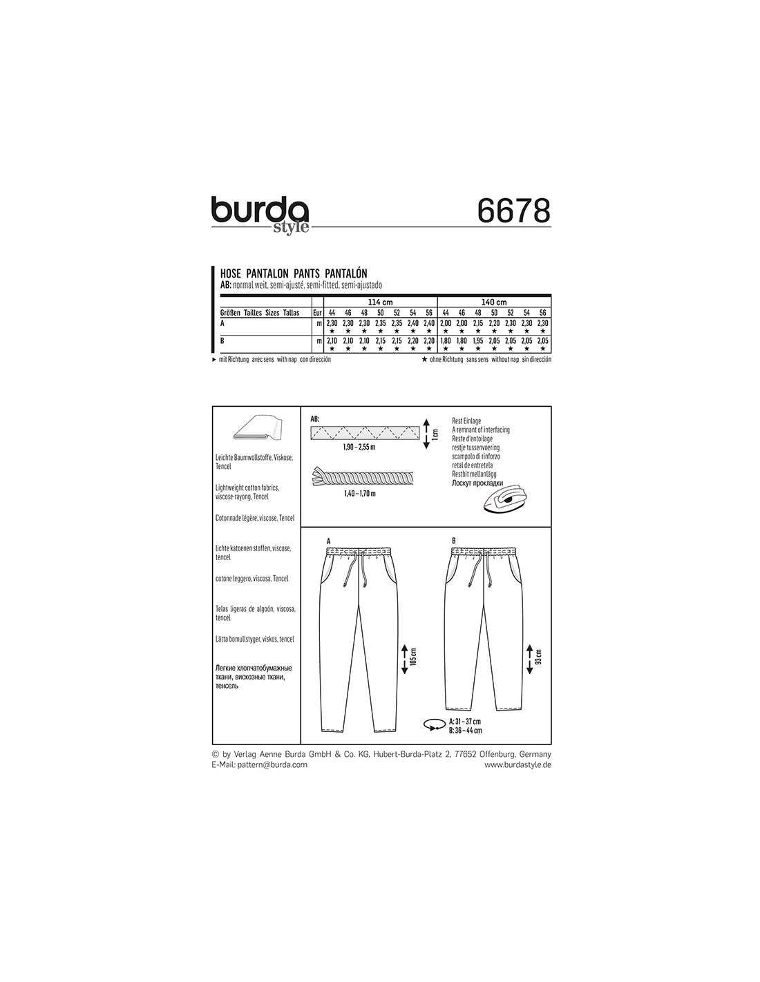 Vill du ha hjälp att tolka tygåtgången? Skicka ett mail till info@tygcenter.se med rubrik Burda 6678 så hjälper vi dig.