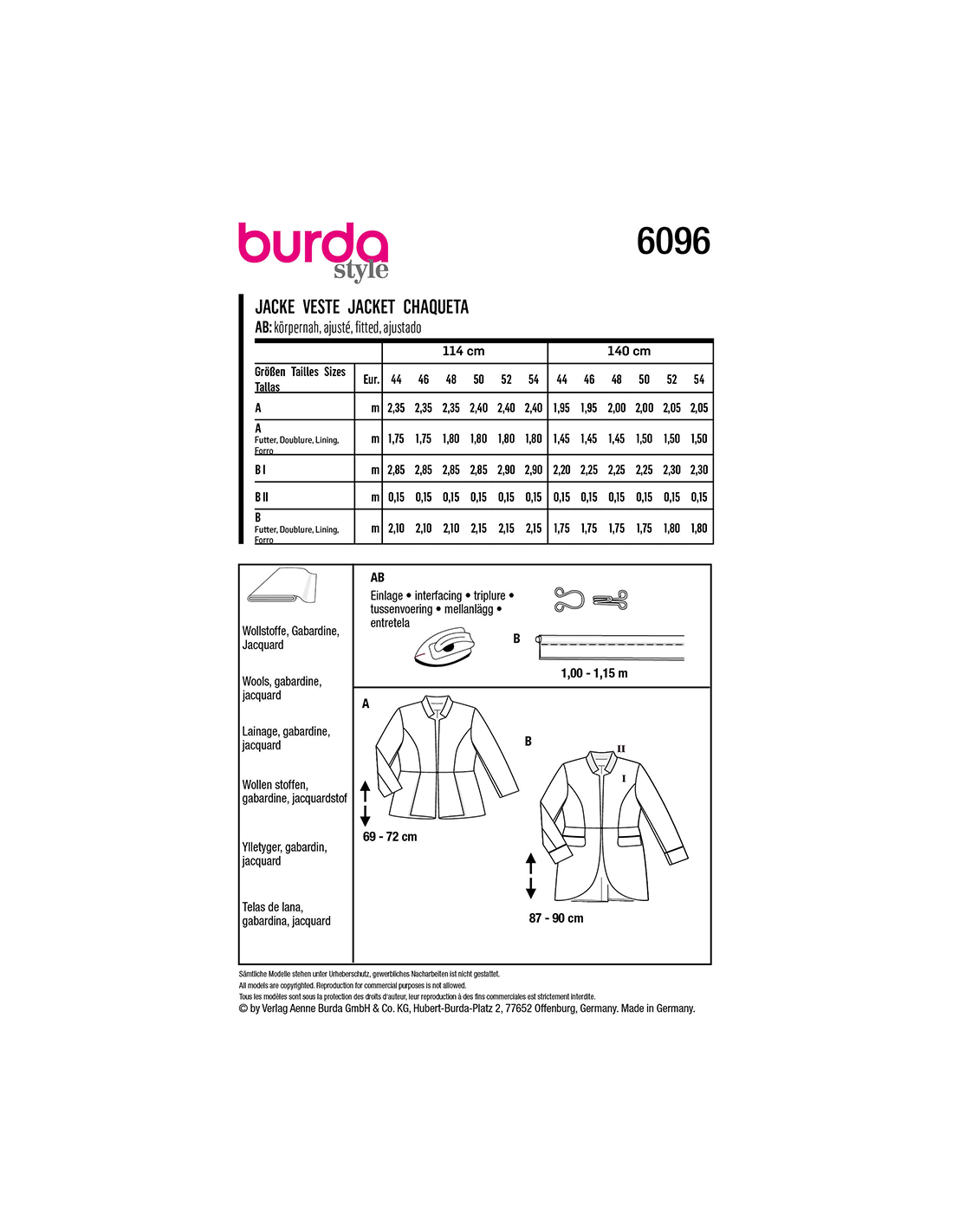 Vill du ha hjälp att tolka tygåtgången? Skicka ett mail till info@tygcenter.se med rubrik Burda 6096 så hjälper vi dig.