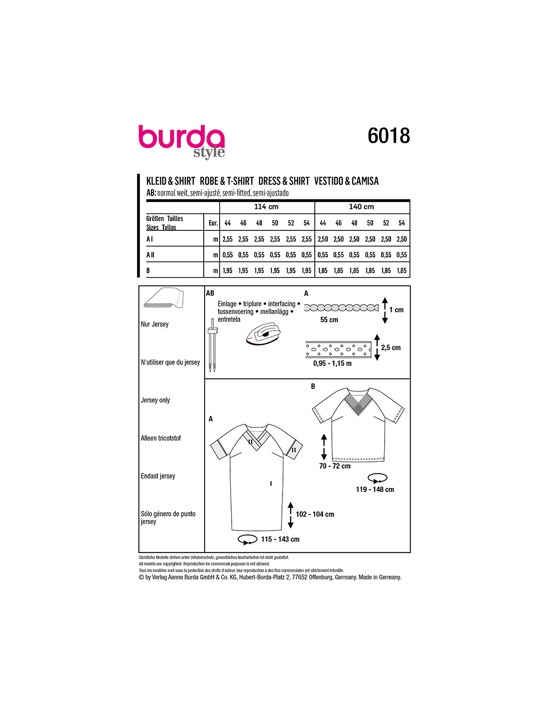 Vill du ha hjälp att tolka tygåtgången? Skicka ett mail till info@tygcenter.se med rubrik Burda 6018 så hjälper vi dig.