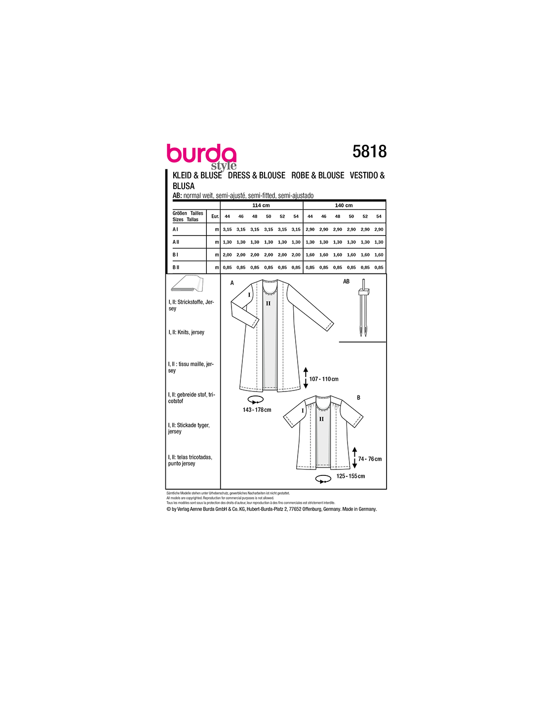 Vill du ha hjälp att tolka tygåtgången? Skicka ett mail till info@tygcenter.se med rubrik Burda 5818 så hjälper vi dig.