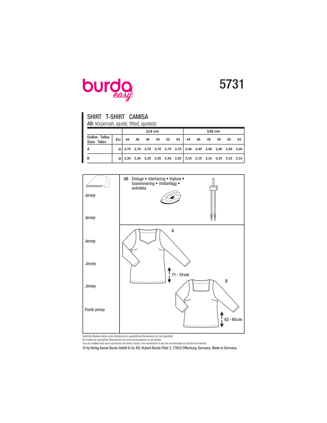 Vill du ha hjälp att tolka tygåtgången? Skicka ett mail till info@tygcenter.se med rubrik Burda 5731 så hjälper vi dig.