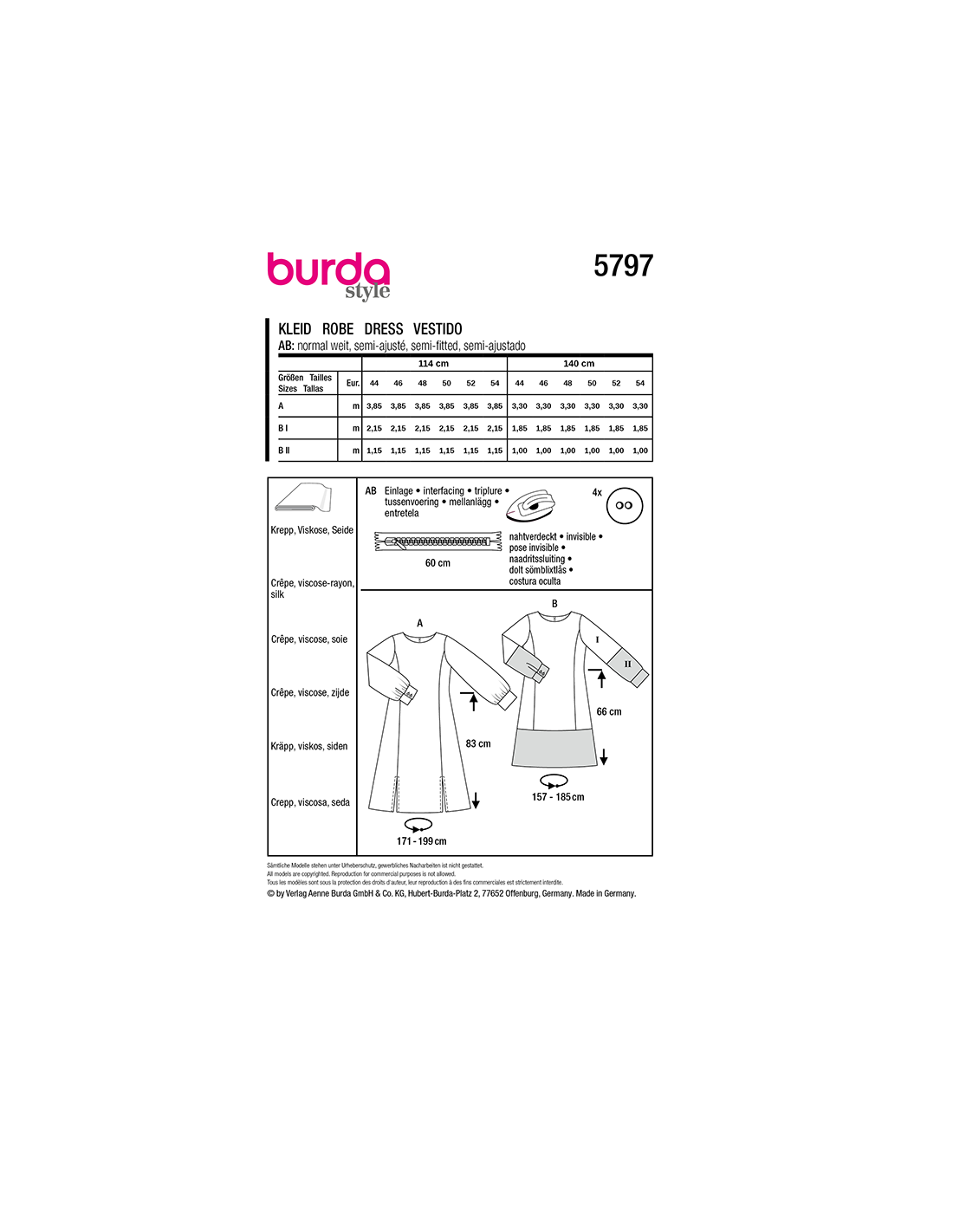 Vill du ha hjälp att tolka tygåtgången? Skicka ett mail till info@tygcenter.se med rubrik Burda 5797 så hjälper vi dig.