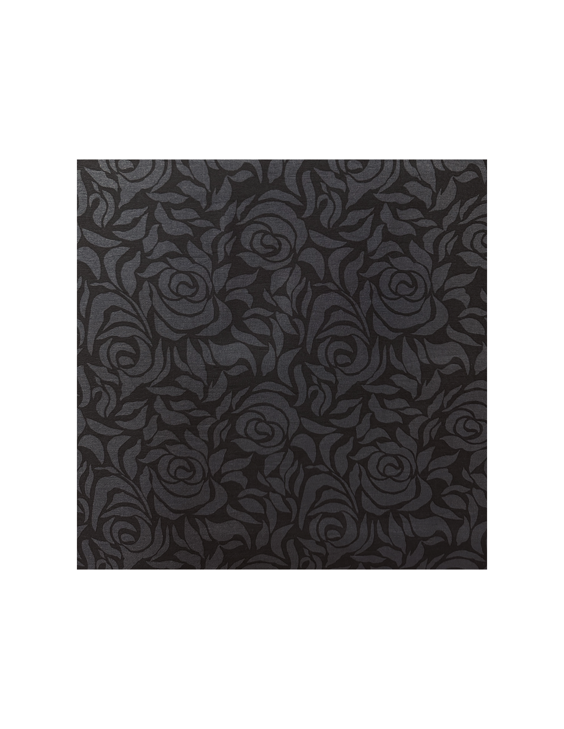 Svart tyg med gråblå blommor. Stretchar på längden. Lämpar sig till sömnad av till exempel byxor, kjolar, klänningar m.m.