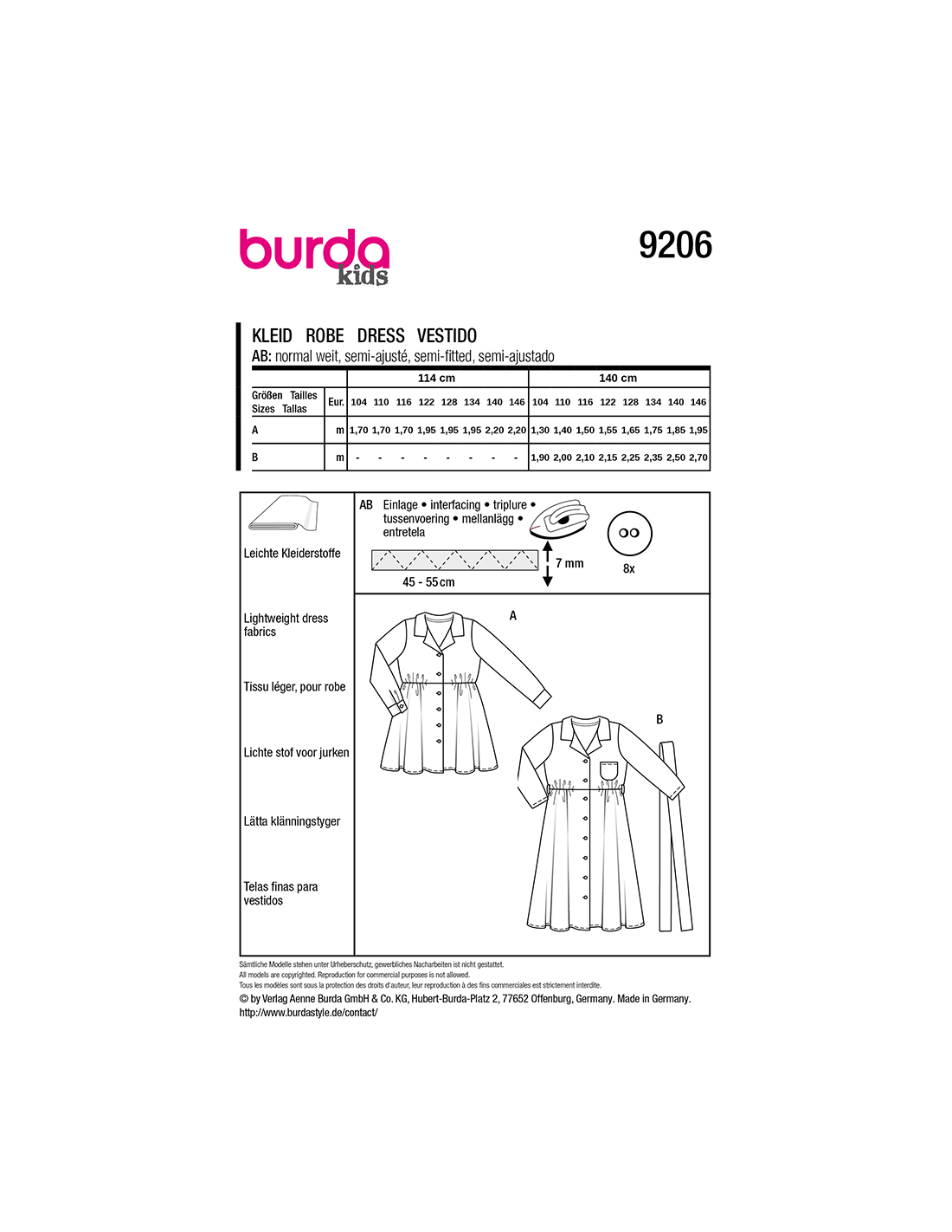 Burda symönster 9206 - Småbarn/Skolbarn - Strl 104-146